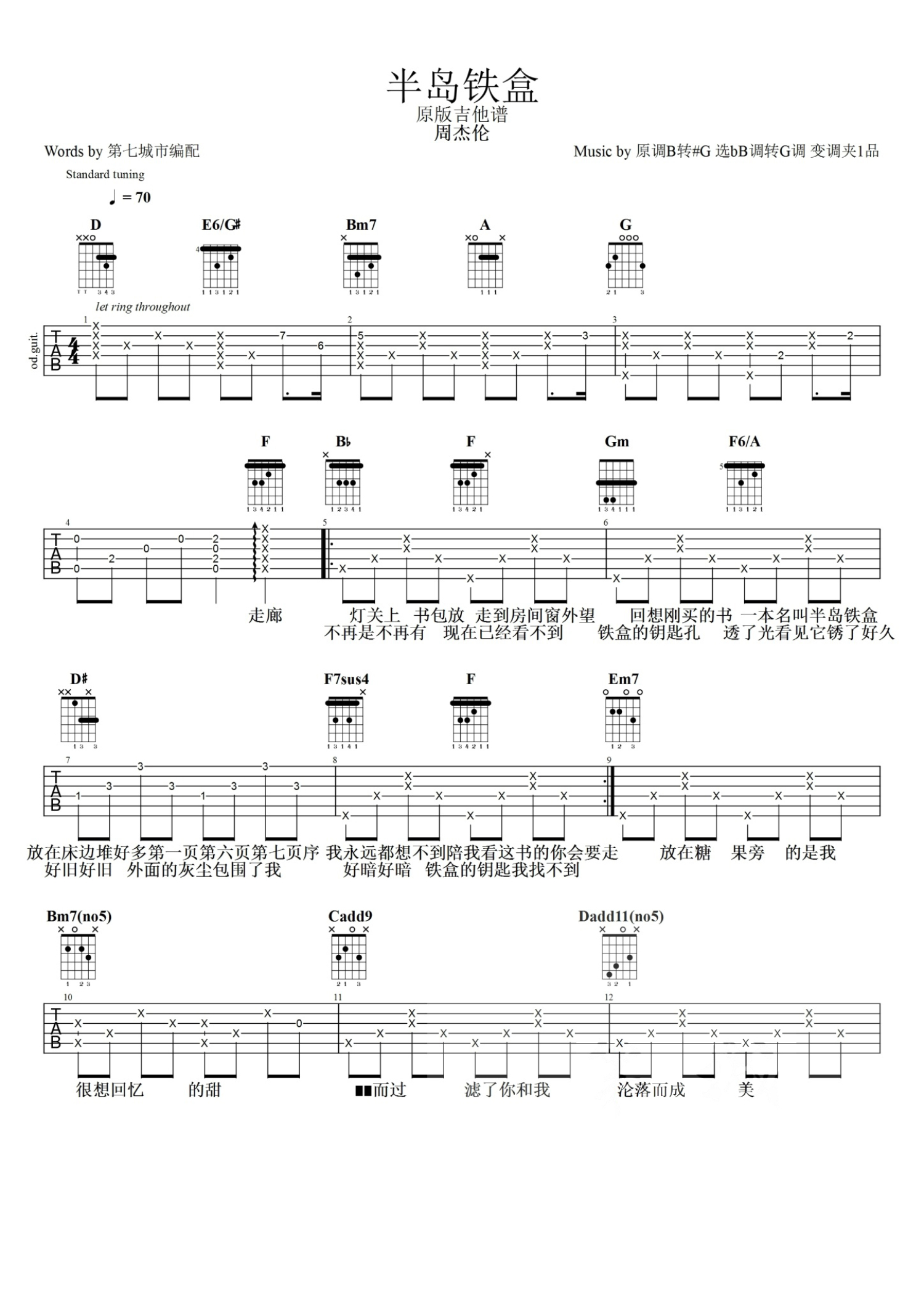 曲谱介绍: 周杰伦《半岛铁盒》吉他谱_吉他弹唱谱