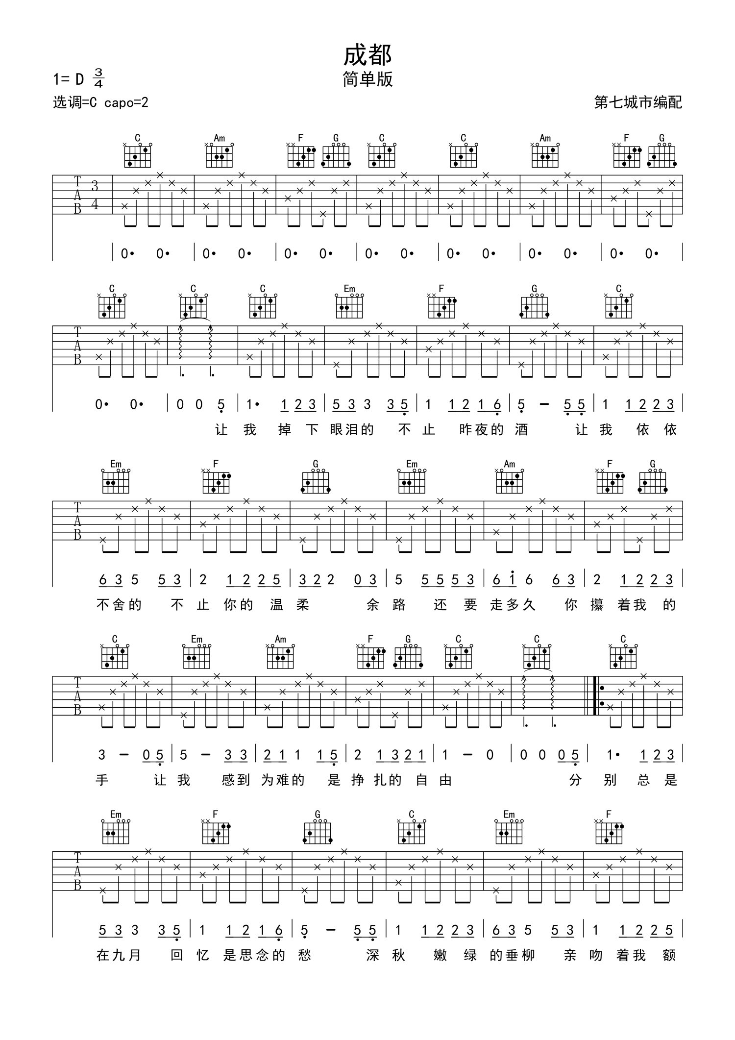 当前位置:琴谱网>吉他弹唱>成都