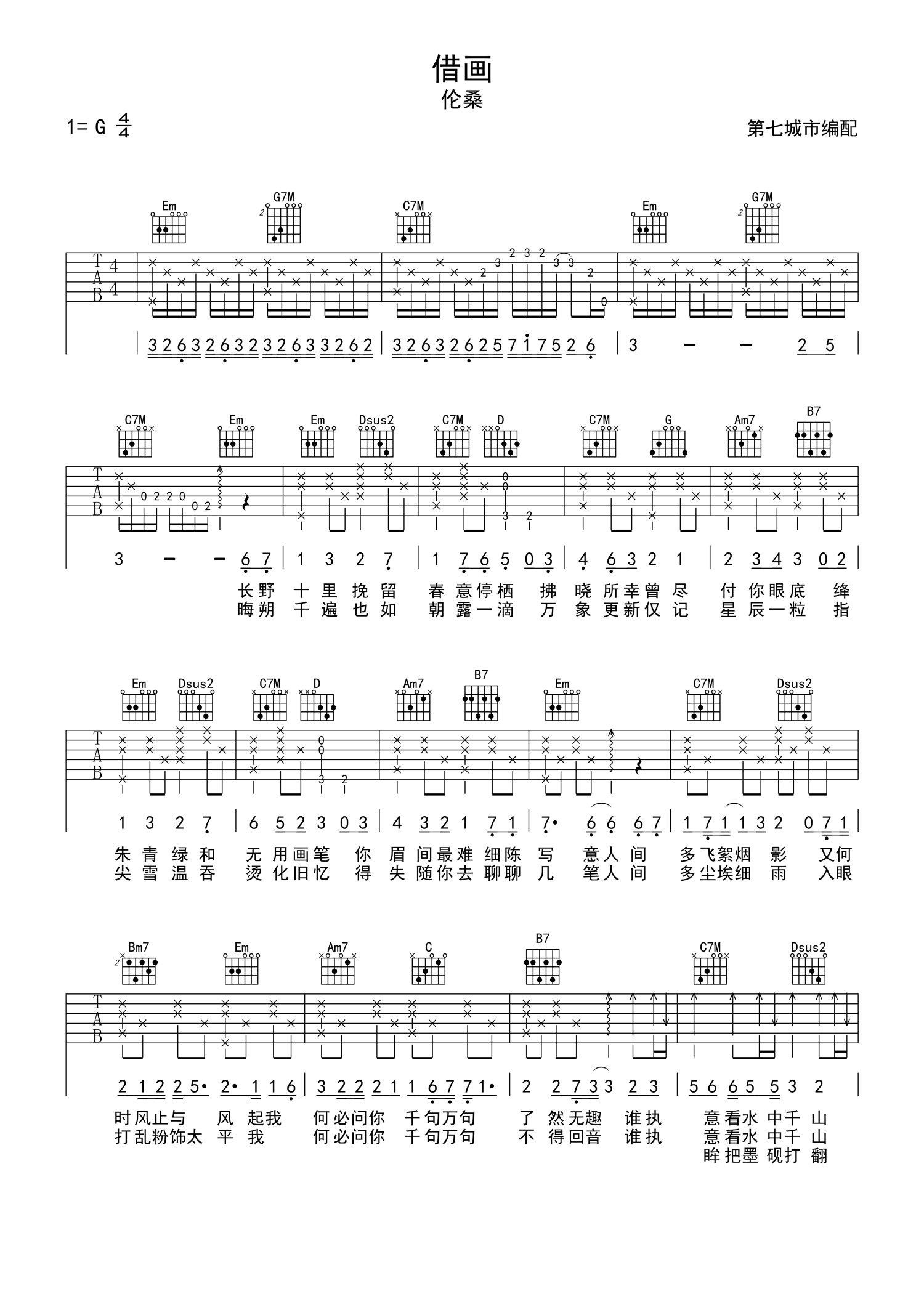 曲谱介绍: 伦桑《借画》吉他谱_G调吉他弹唱谱