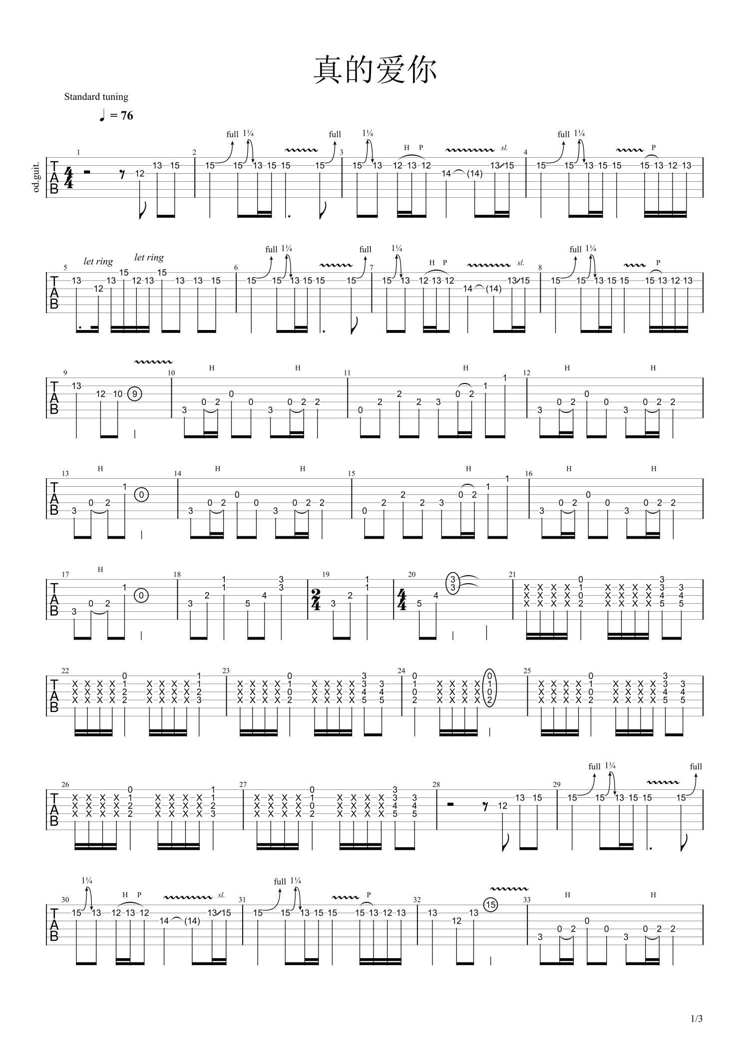 当前位置:琴谱网>电吉他谱>真的爱你