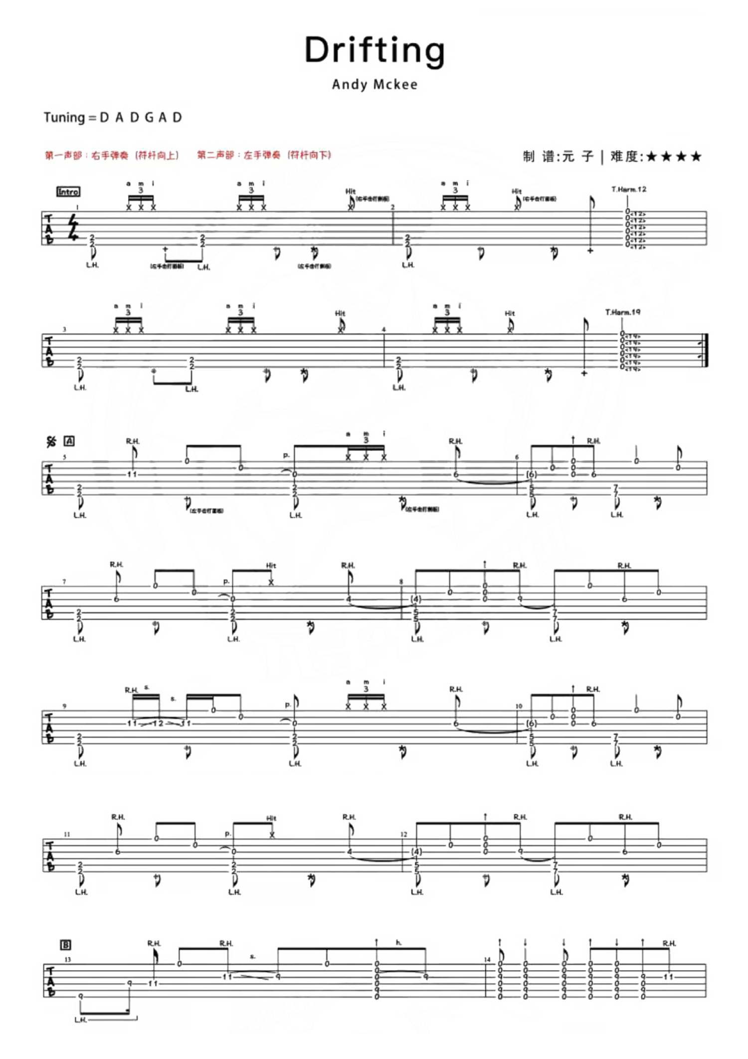 曲谱介绍: 吉他打击乐神曲《Drifting》吉他谱_吉他独奏谱