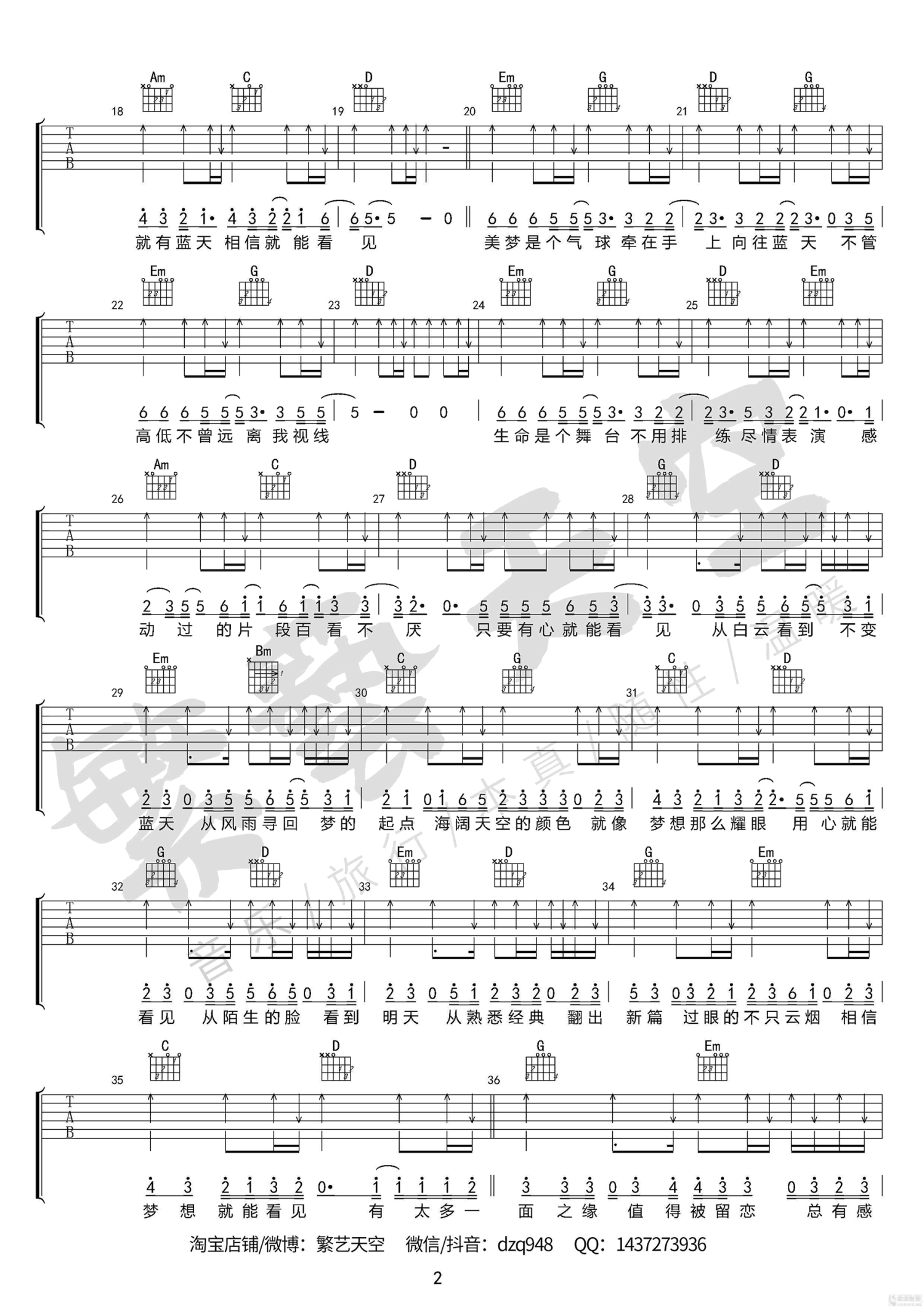 当前位置:琴谱网>吉他弹唱>梦想天空分外蓝