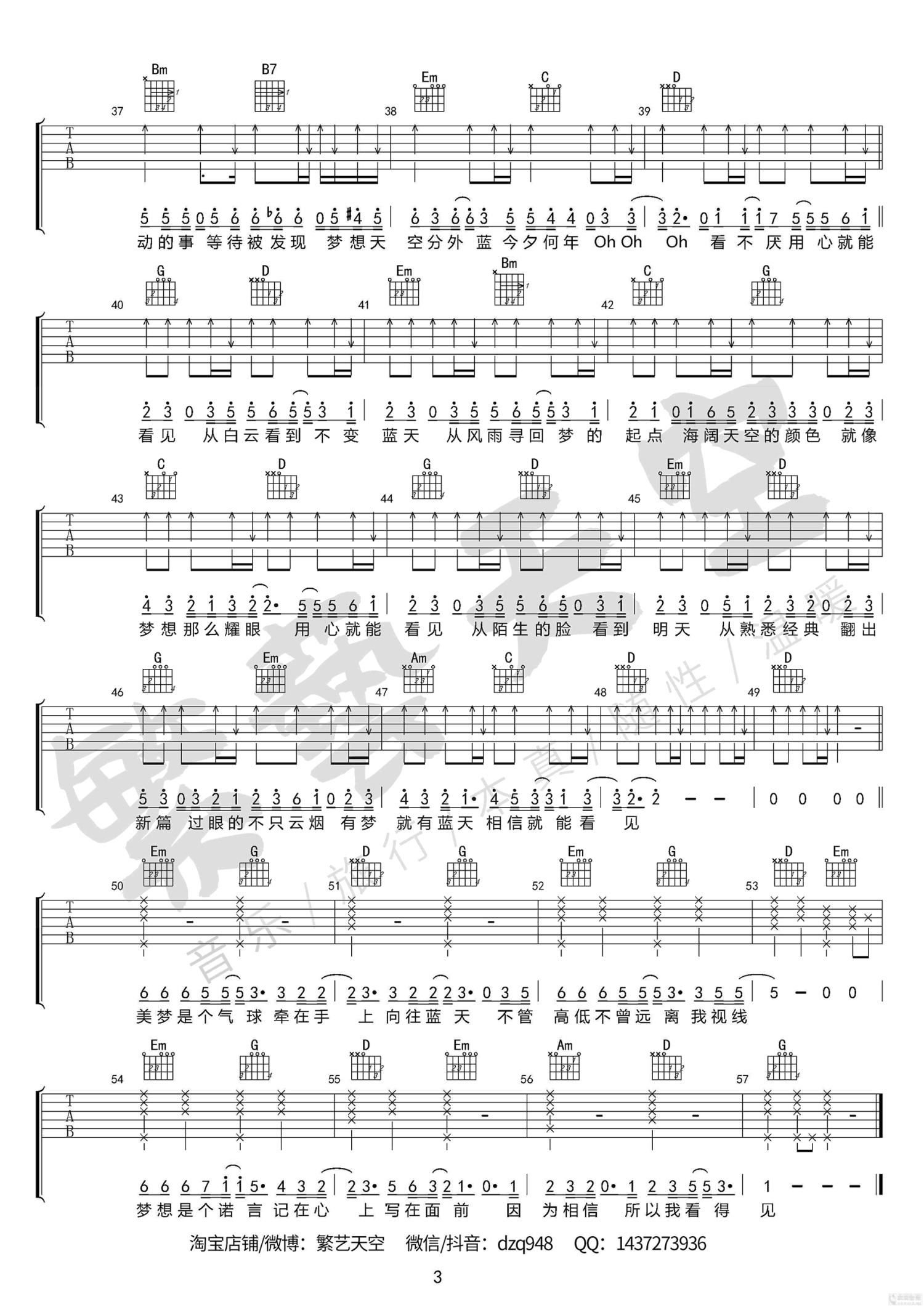 琴谱网为您精心推荐 梦想天空分外蓝 高清图谱