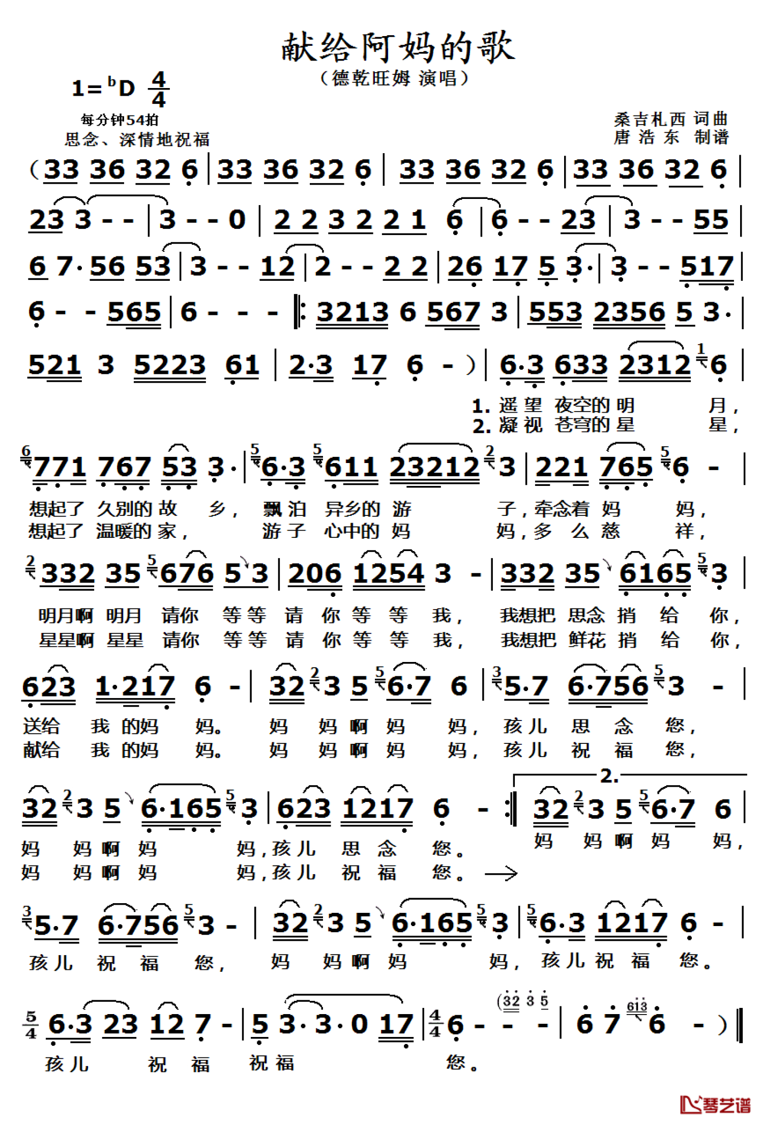 献给阿妈的歌简谱 - 德乾旺姆