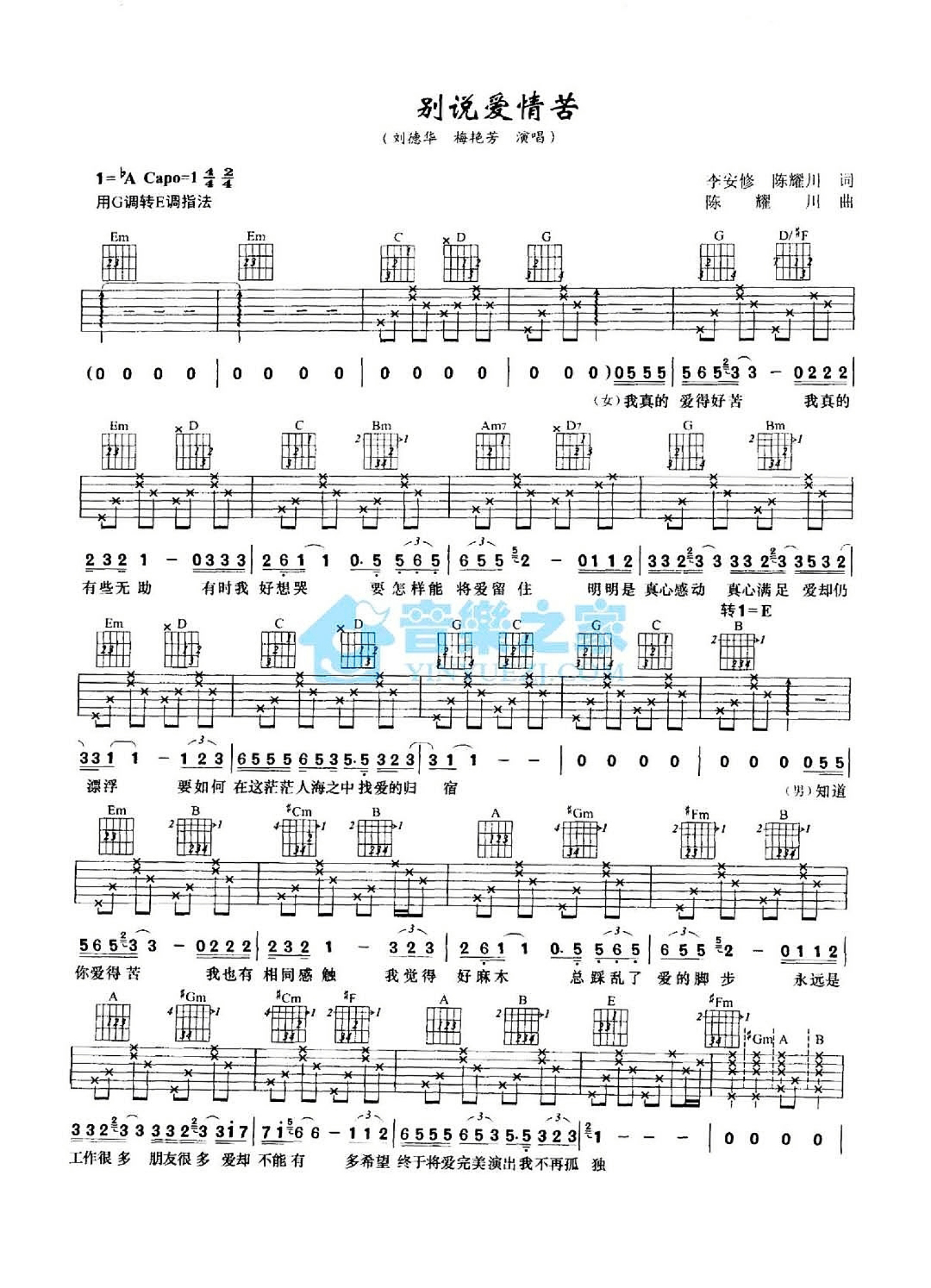 当前位置:琴谱网>吉他弹唱>别说爱情苦