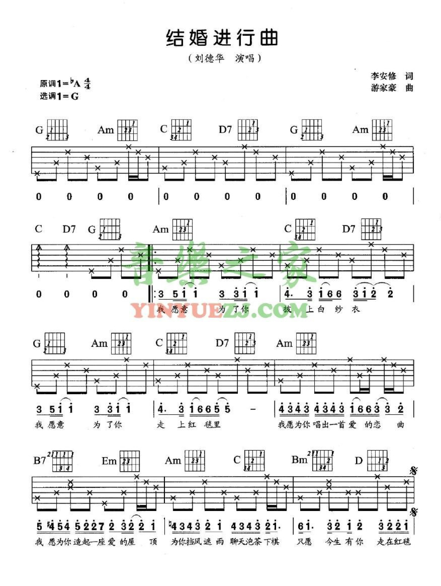 曲谱介绍: 刘德华《结婚进行曲》吉他谱_G调吉他弹唱谱