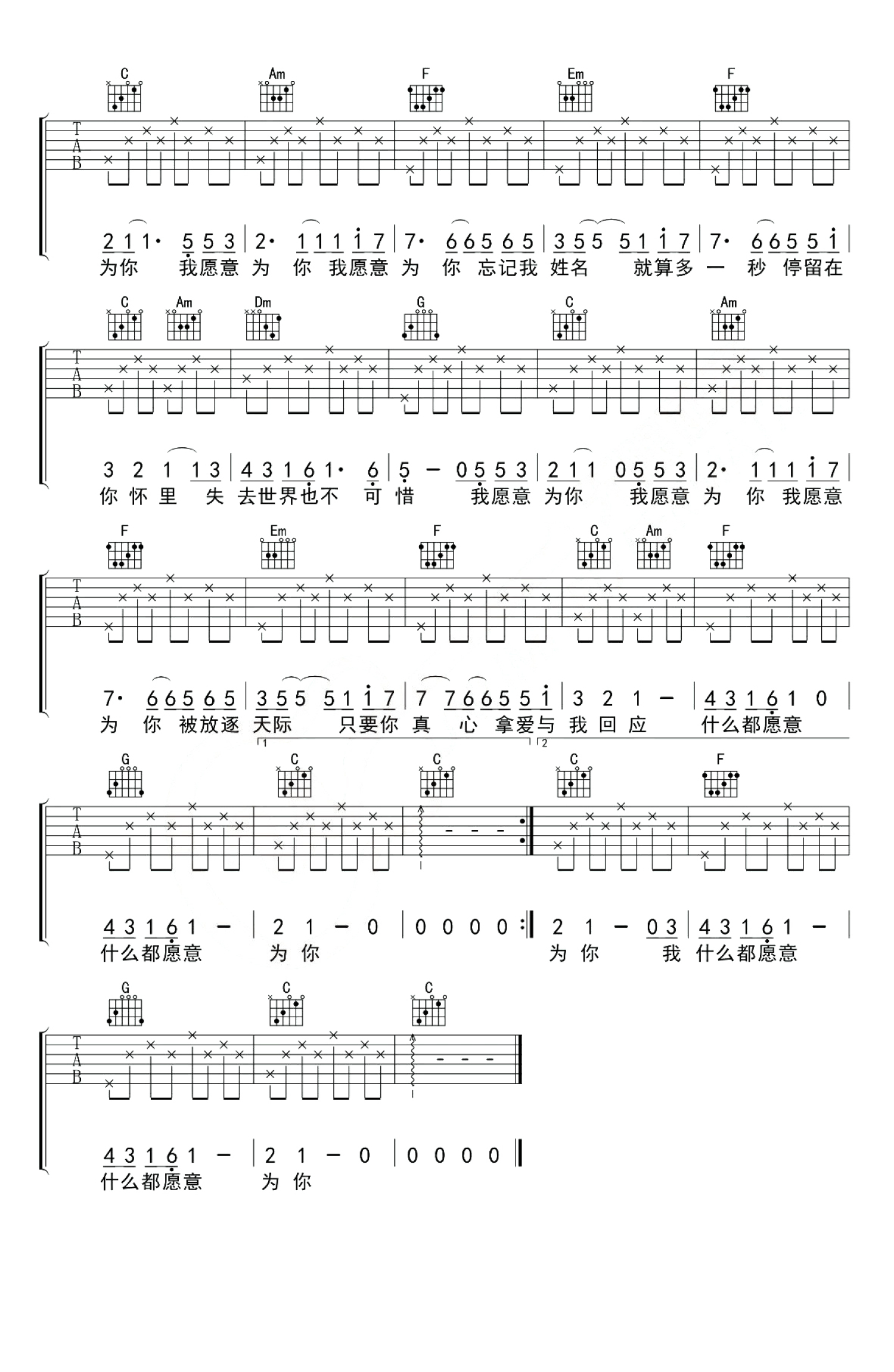 当前位置:琴谱网>吉他弹唱>我愿意