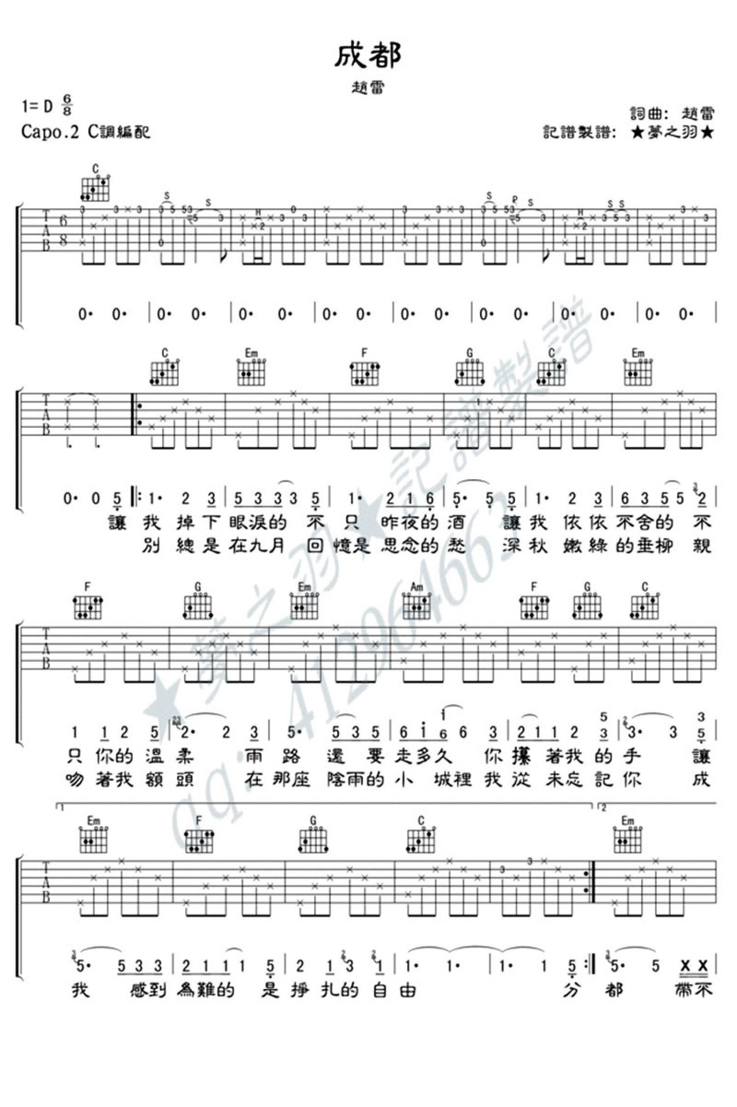 当前位置:琴谱网>吉他弹唱>成都