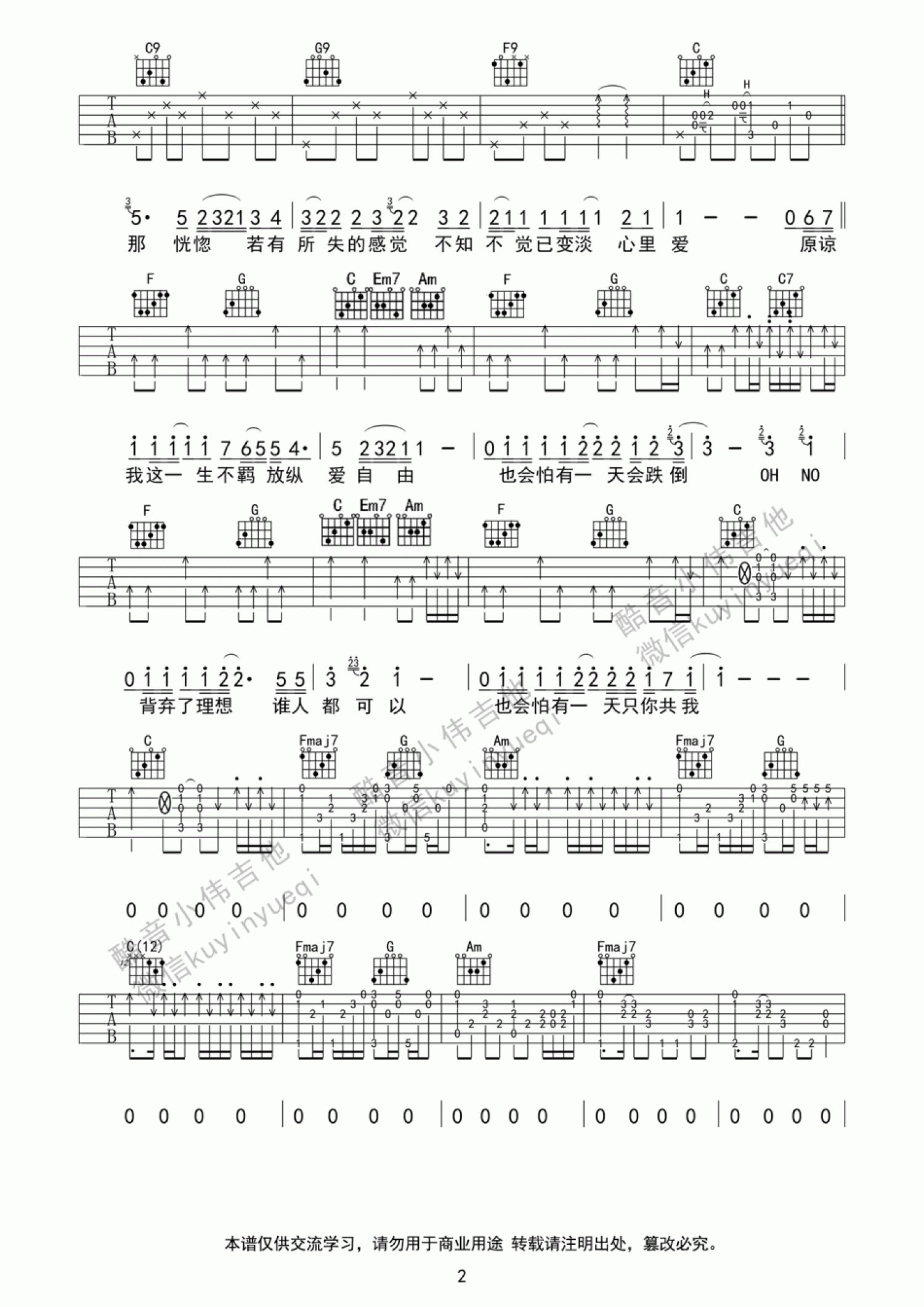 吉他弹唱C调来源:酷音小伟932 浏览2020-12-30 15:06发布图谱共3页