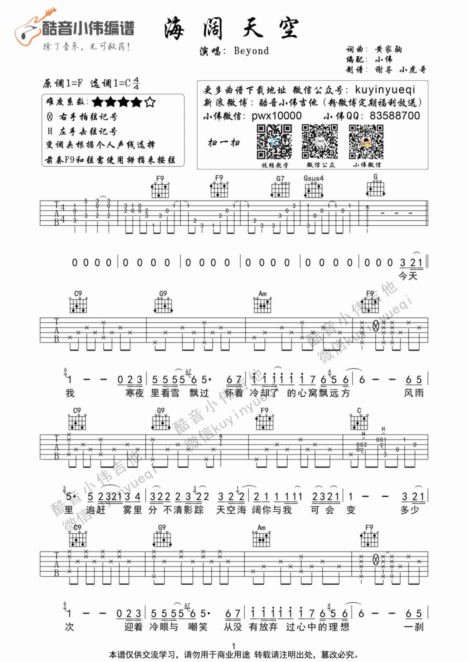 当前位置:琴谱网>吉他弹唱>海阔天空