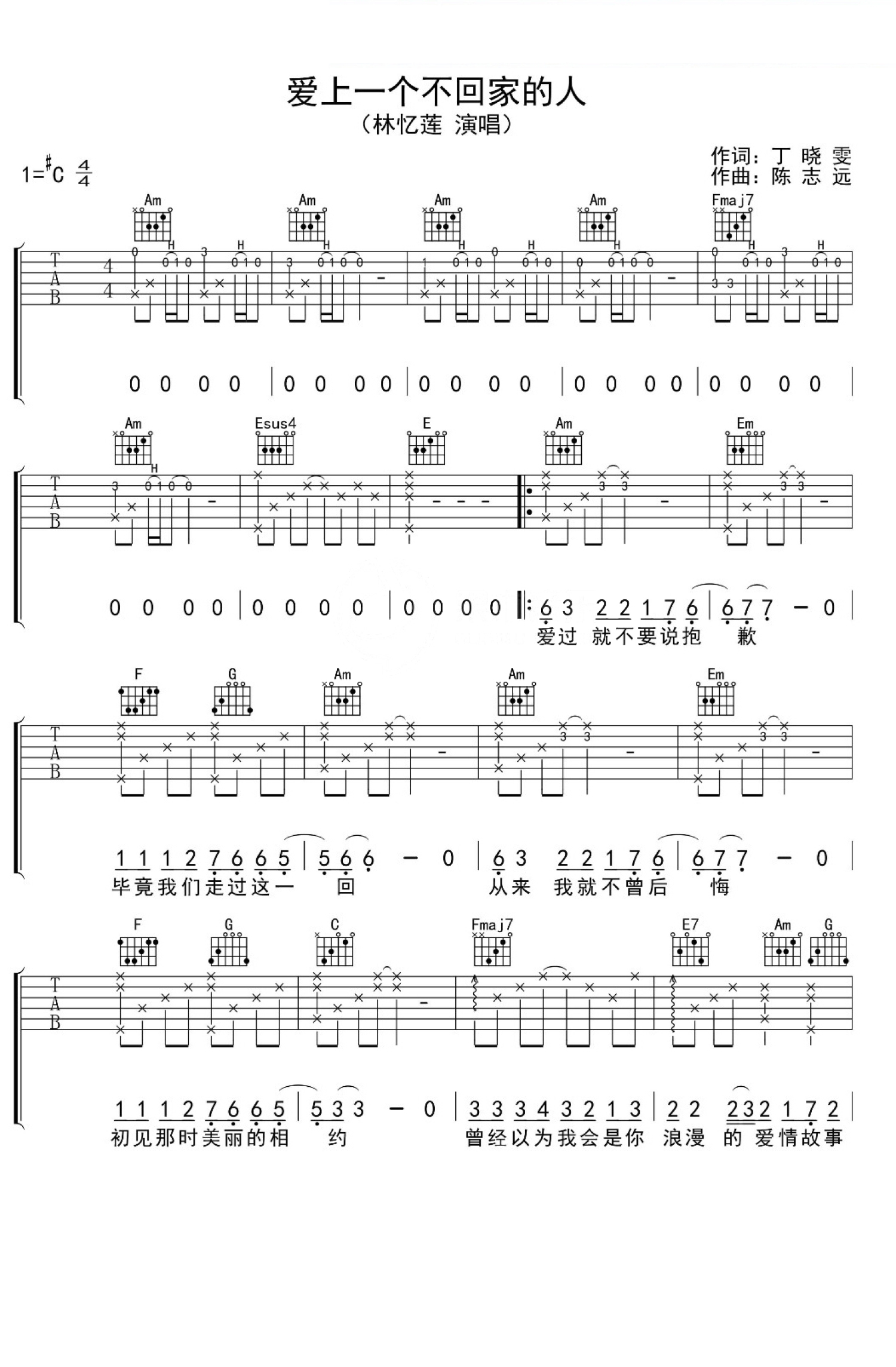 曲谱介绍: 林忆莲《爱上一个不回家的人》吉他谱_C调吉他弹唱谱