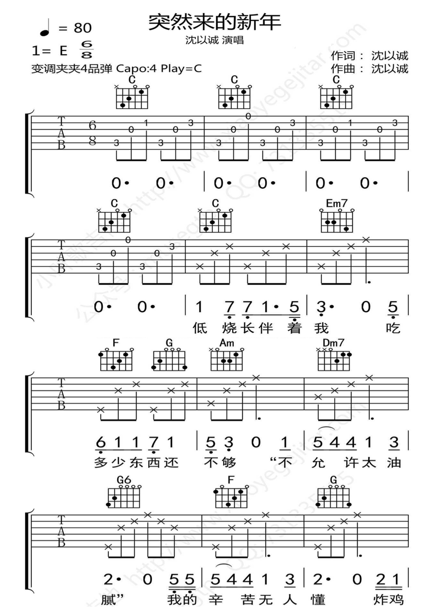 突然来的新年吉他谱 - 沈以诚 - C调吉他弹唱谱