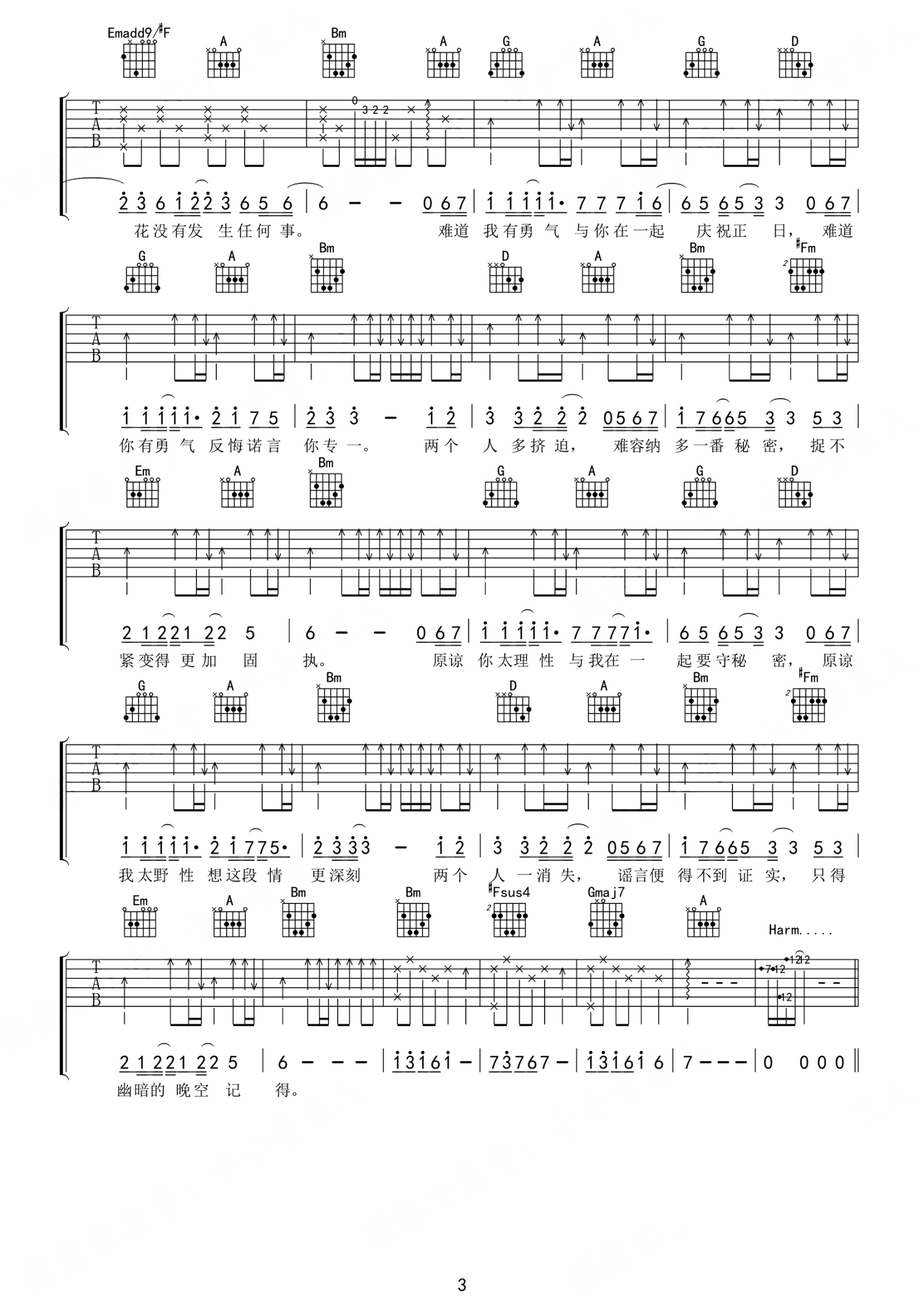 吉他弹唱D调来源:知秋5037 浏览2021-05-08 11:41发布图谱共3页