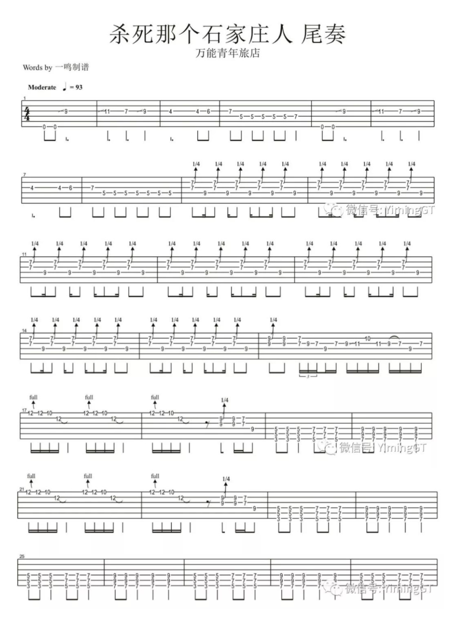 曲谱介绍: 万能青年旅店《采石》吉他谱_电吉他谱