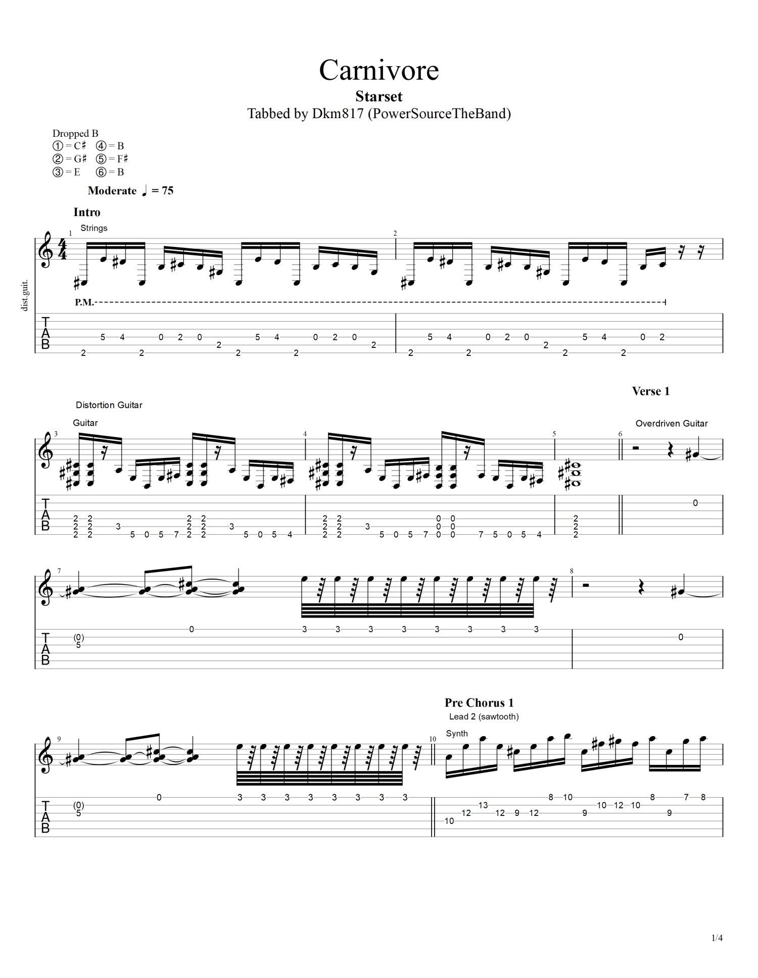 Carnivore吉他谱 - starset - 电吉他谱