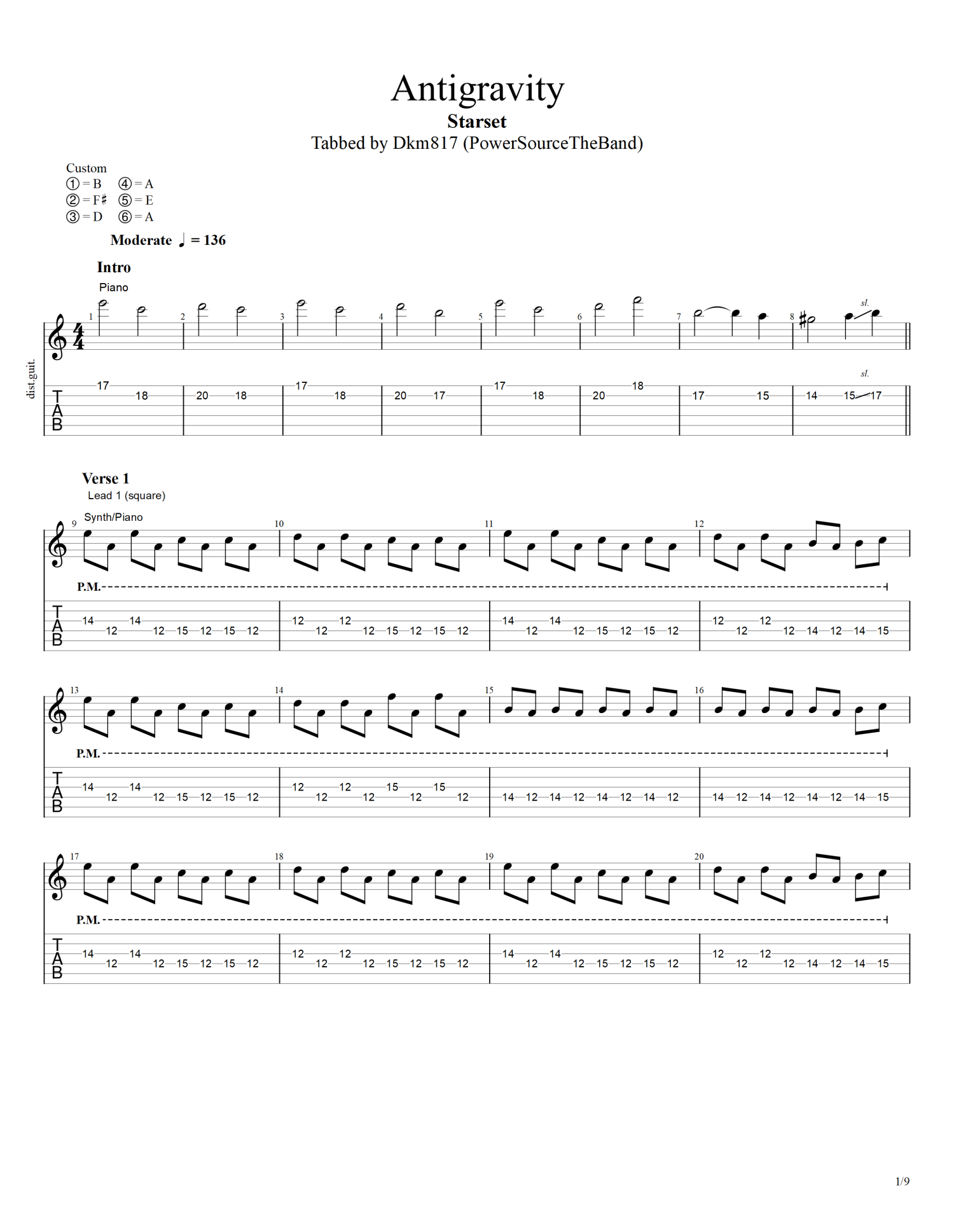 曲谱介绍: starset《Antigravity》吉他谱_电吉他谱
