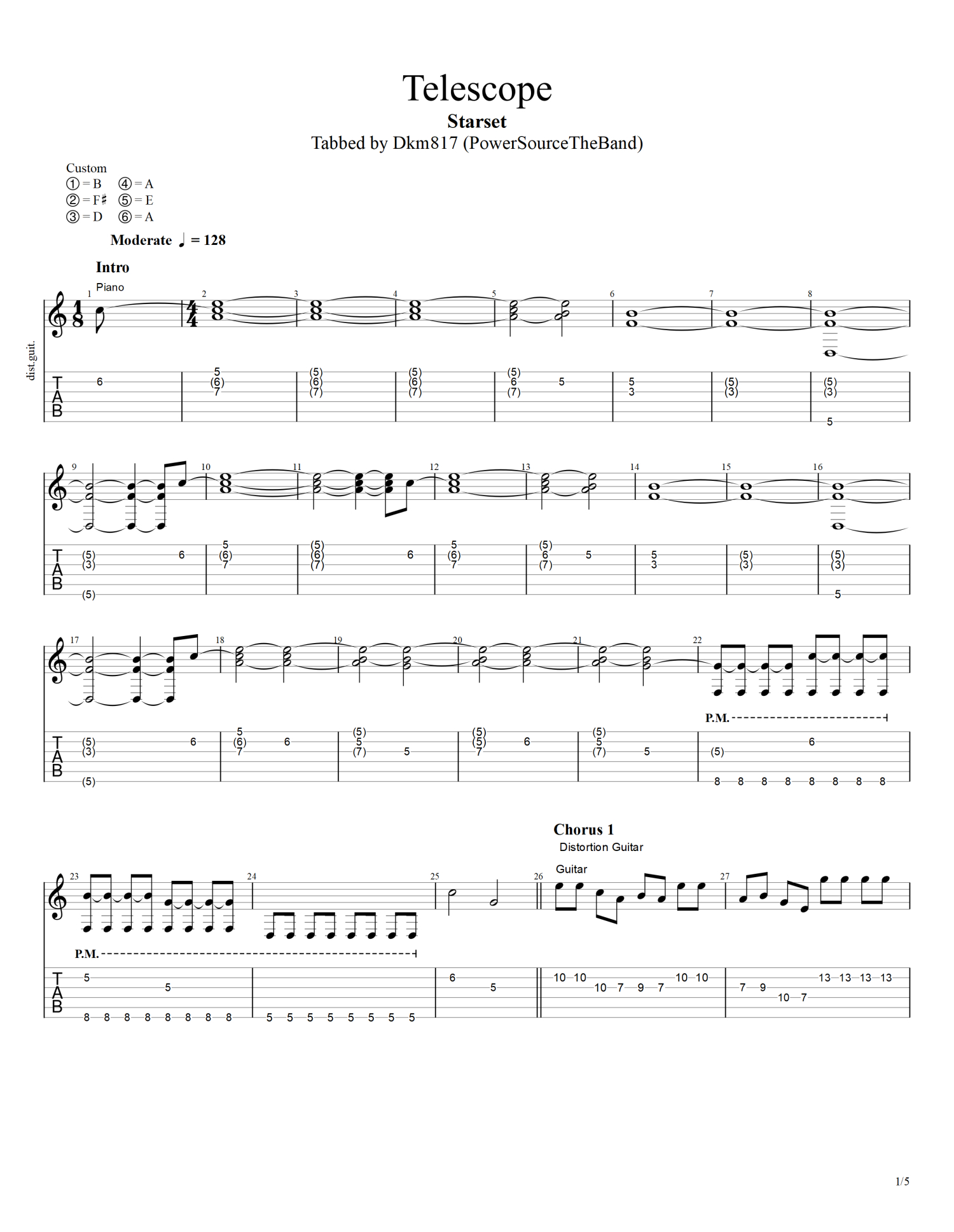 曲谱介绍: starset《Telescope》吉他谱_电吉他谱