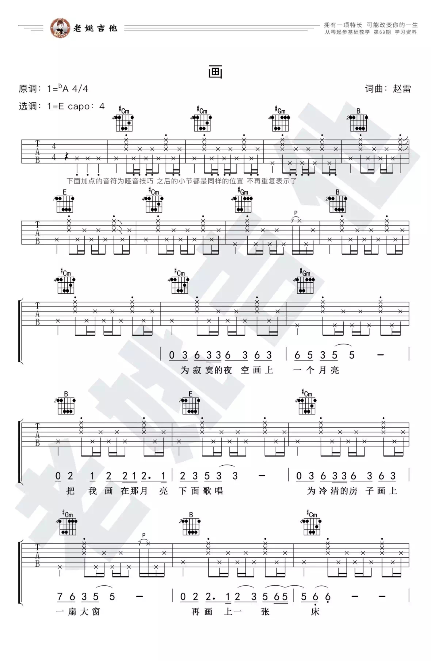 曲谱介绍: 赵雷《画》吉他谱_E调吉他弹唱谱