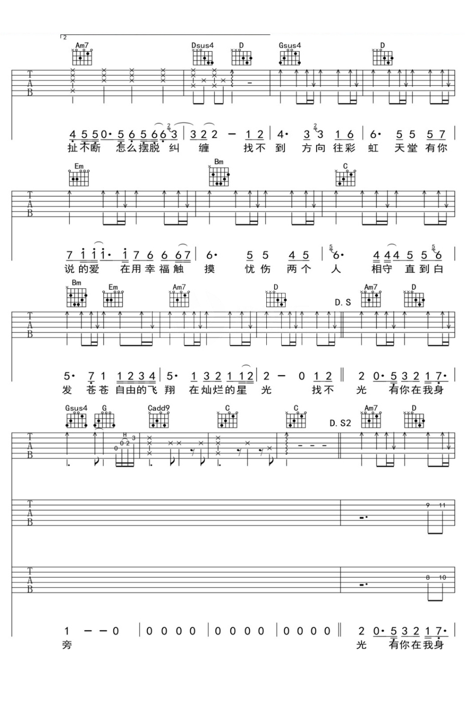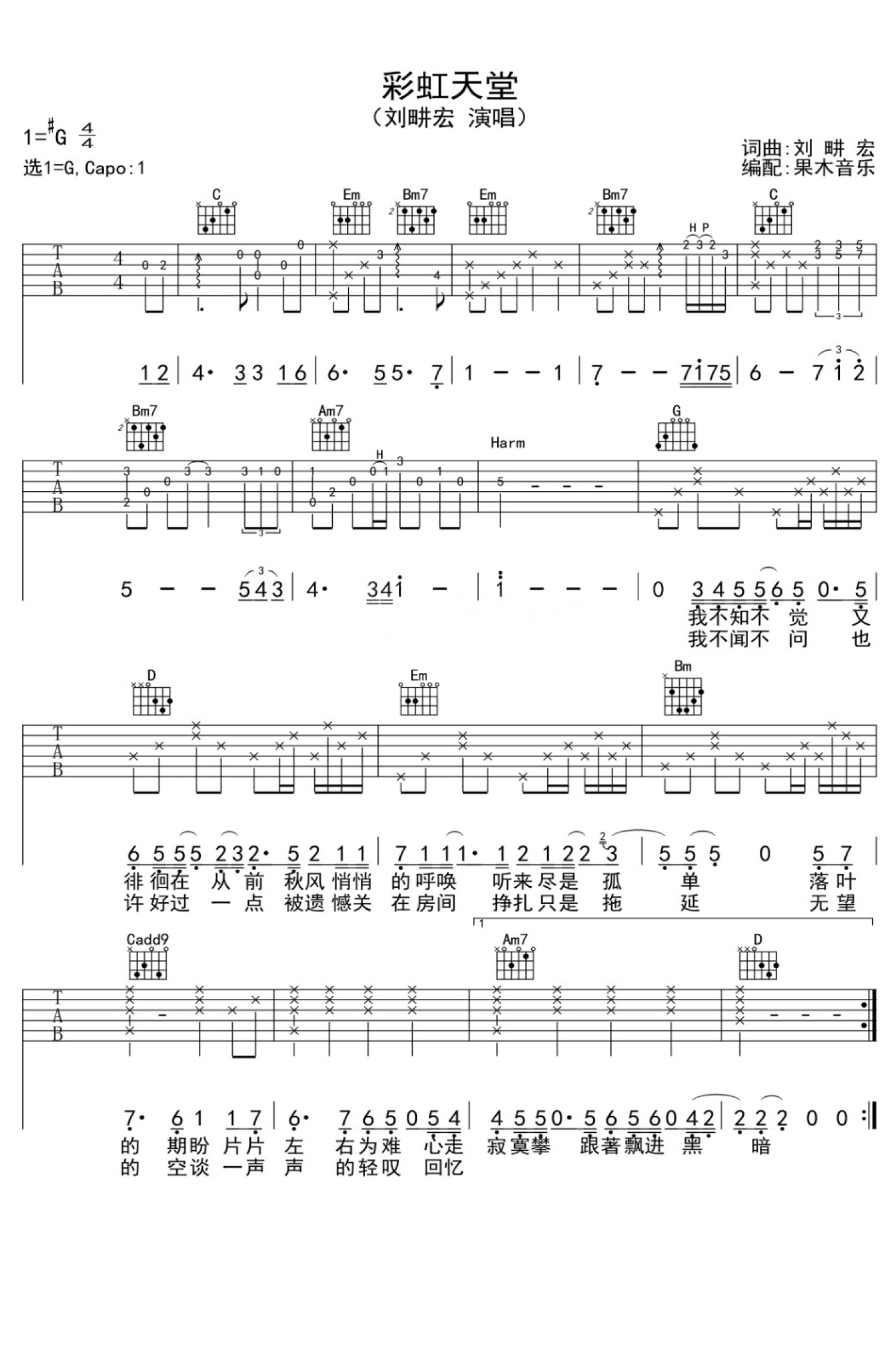 曲谱介绍: 刘畊宏《彩虹天堂》吉他谱_G调吉他弹唱谱