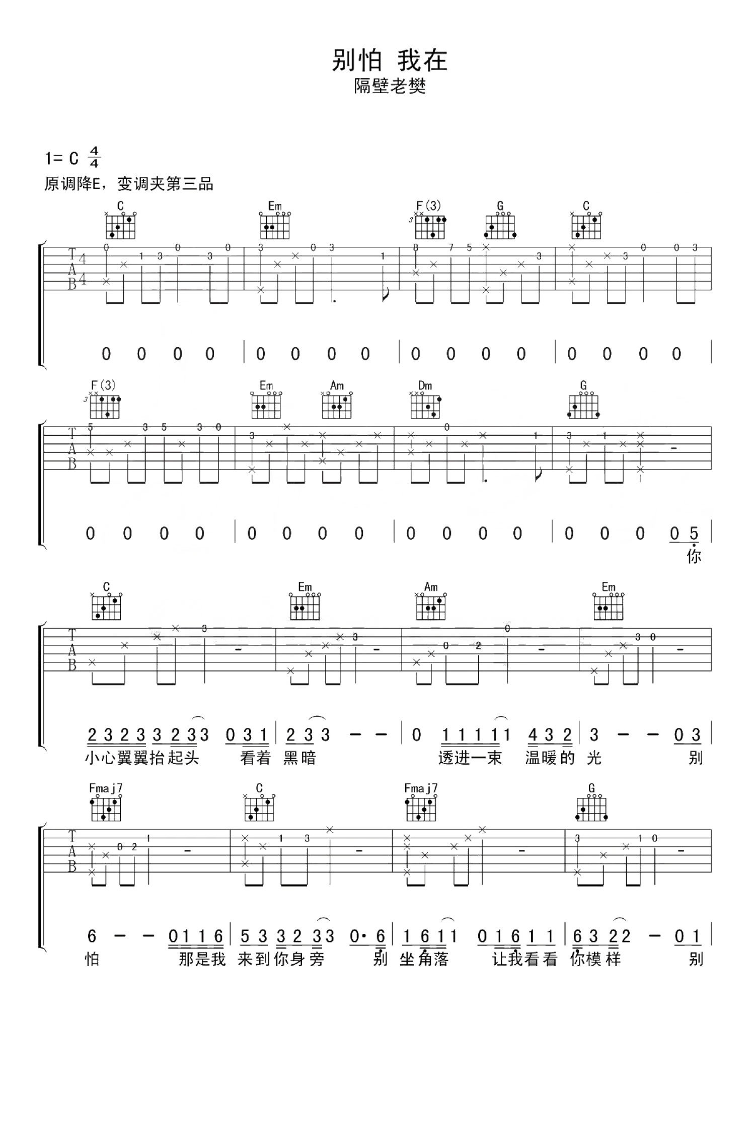 别怕我在吉他谱 - 隔壁老樊 - C调吉他弹唱谱