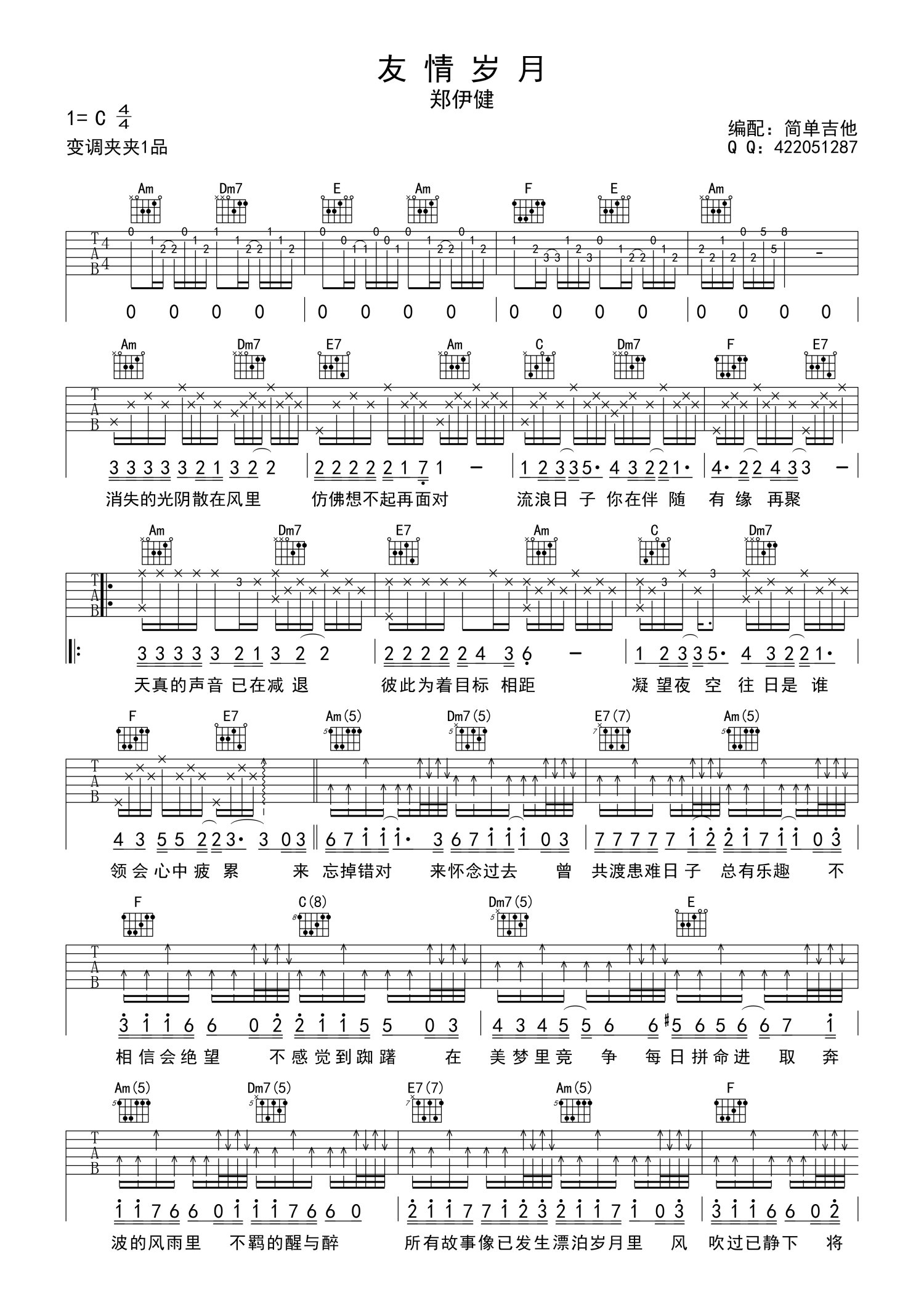 • 友情岁月吉他谱 - 郑伊健 - C调吉他弹唱谱第1张