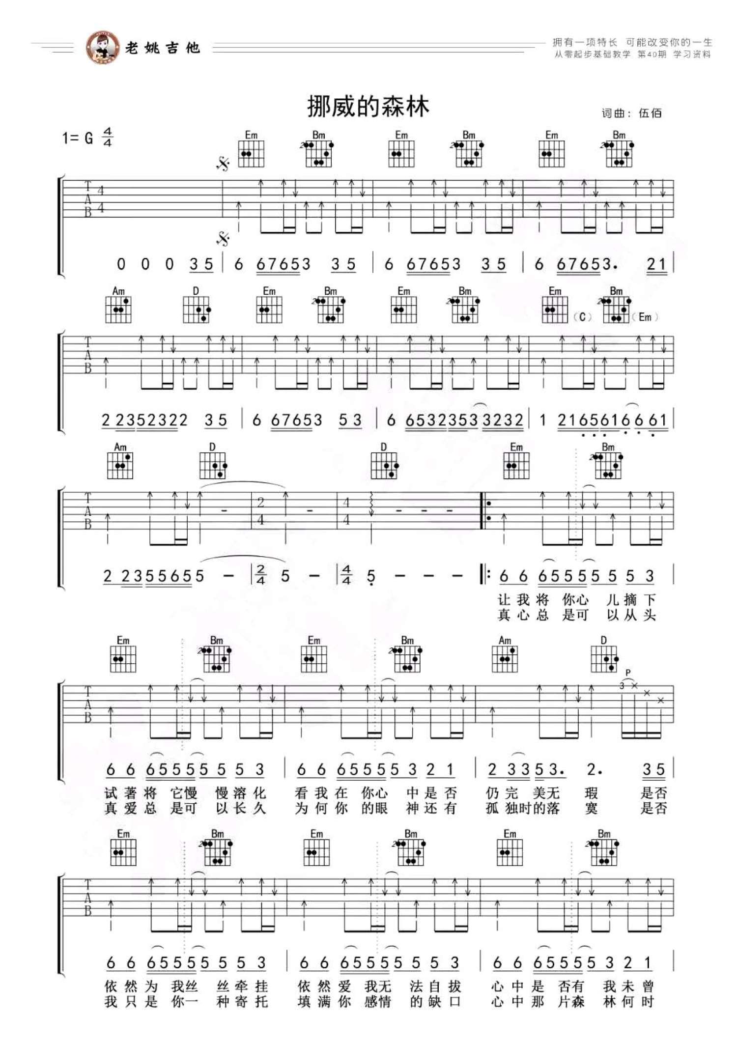 曲谱介绍: 伍佰《挪威的森林》吉他谱_G调吉他弹唱谱