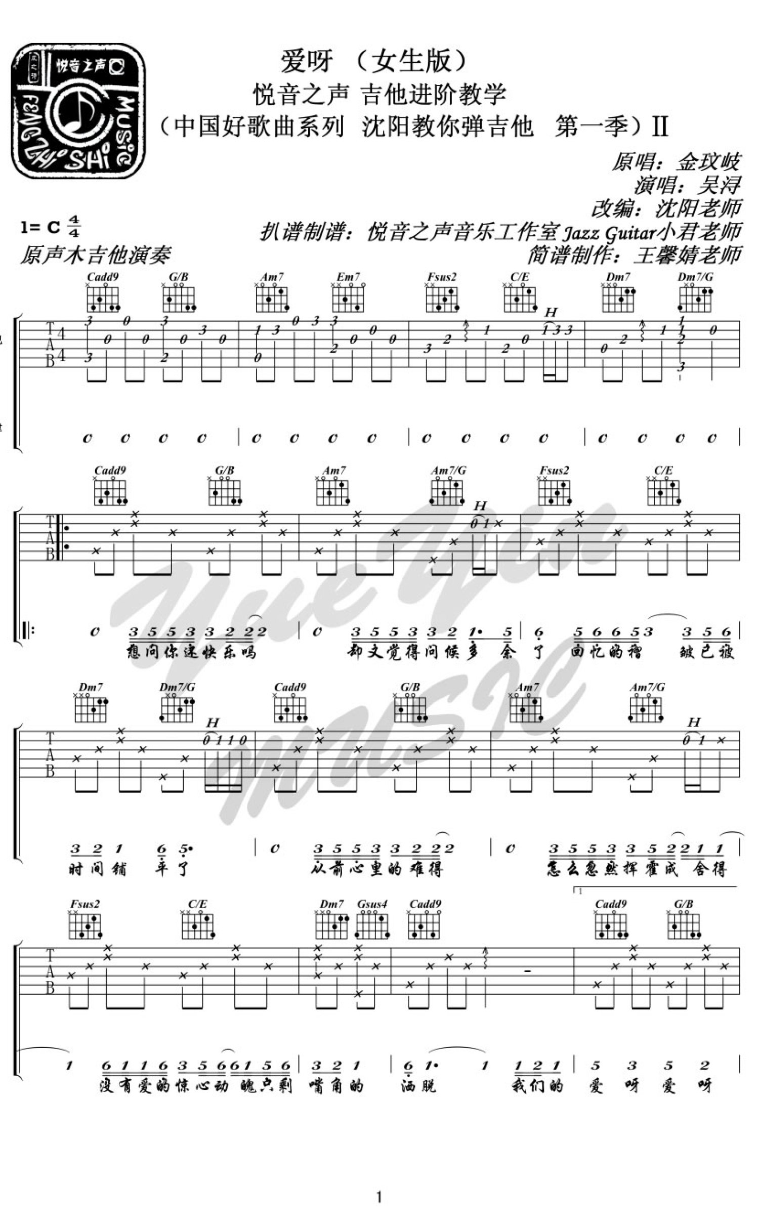 琴谱网为您精心推荐 爱呀 高清图谱