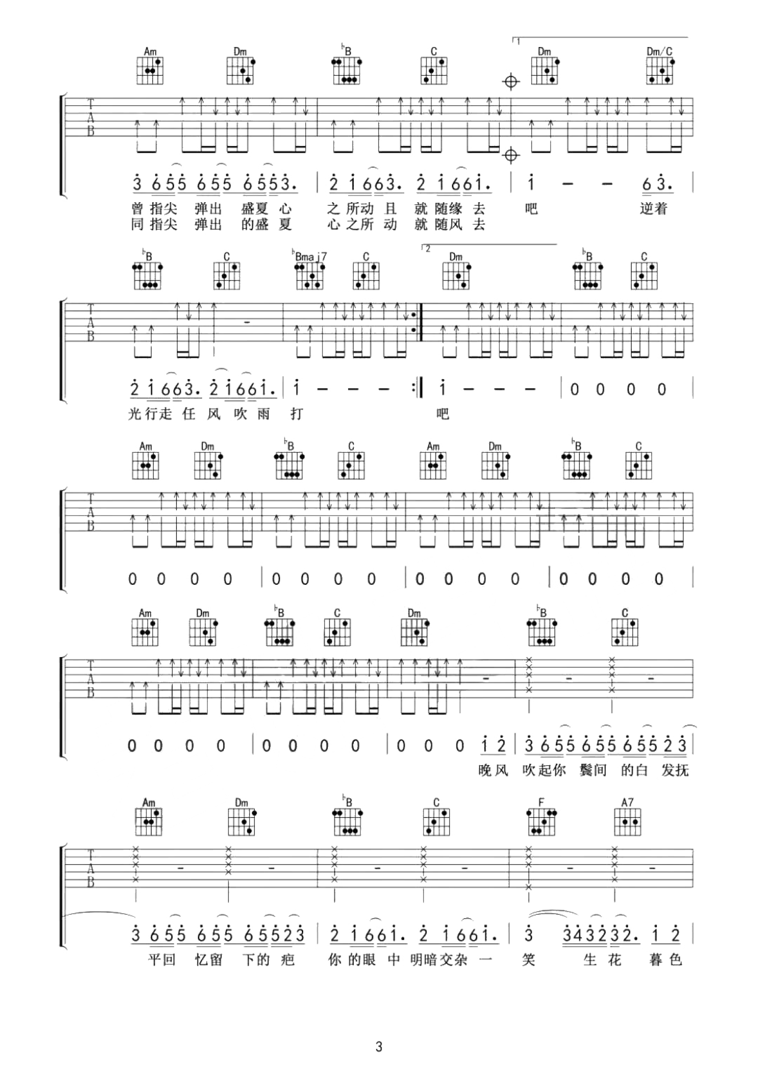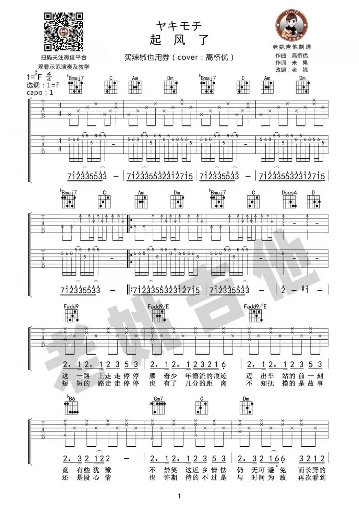 曲谱介绍: 买辣椒也用券《起风了》吉他谱_F调吉他弹唱谱