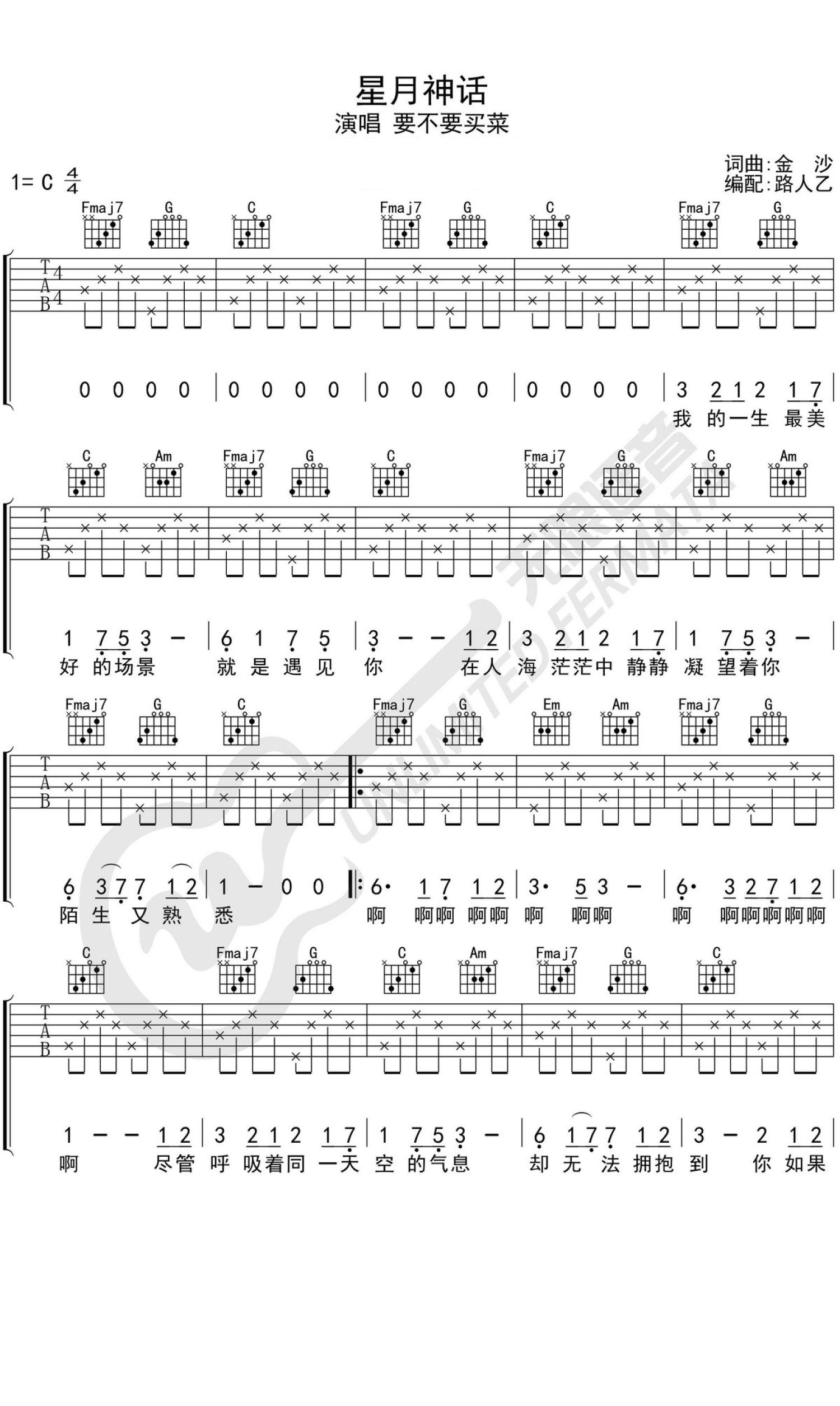 星月神话吉他谱 - 要不要买菜/金莎 - C调吉他弹唱谱