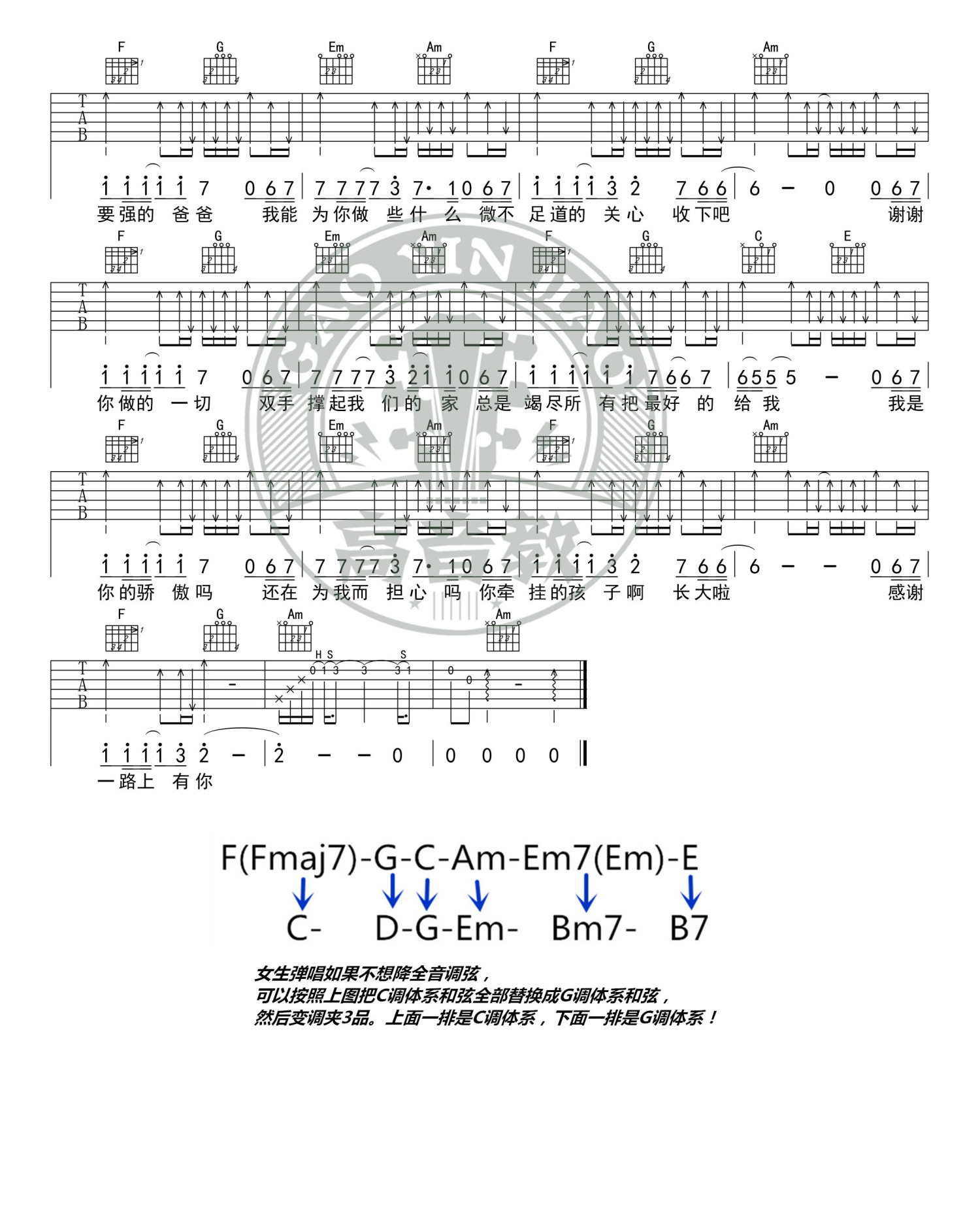 曲谱介绍: 筷子兄弟《父亲》吉他谱_C调吉他弹唱谱