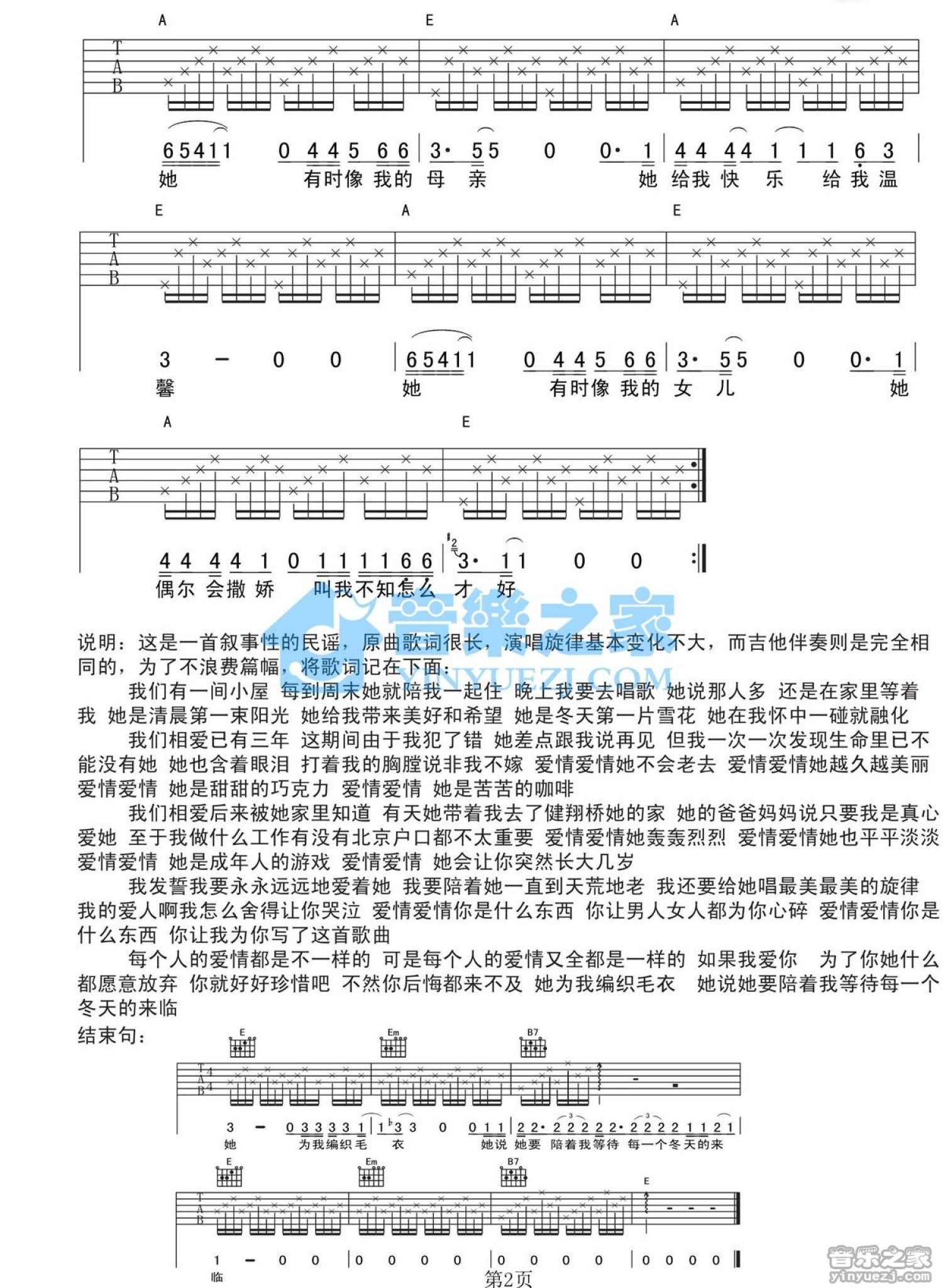 当前位置:琴谱网>吉他弹唱>她为我编织毛衣