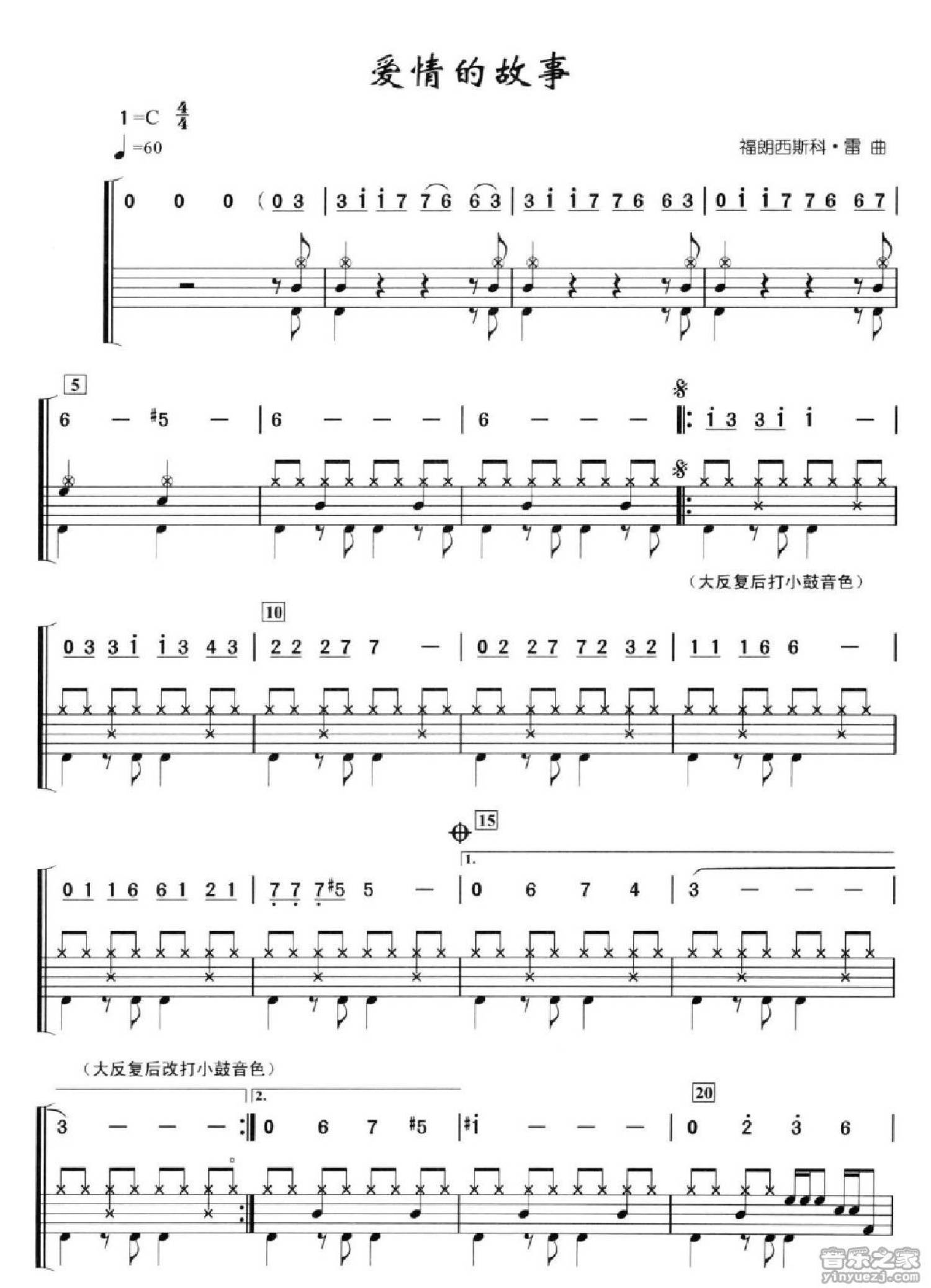 曲谱介绍: 《爱情的故事》架子鼓谱