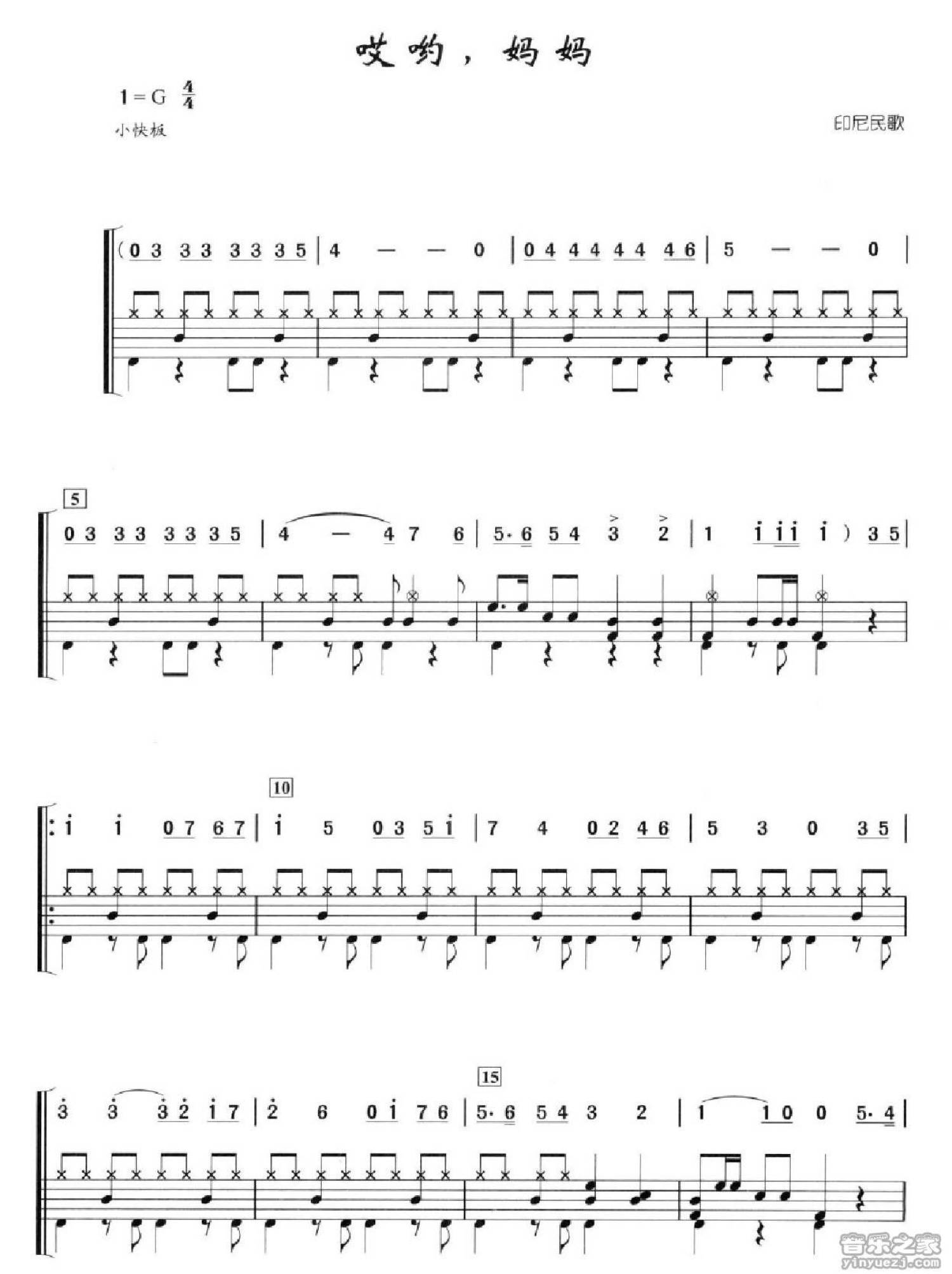 哎哟,妈妈鼓谱 - 印尼民歌 - 架子鼓谱