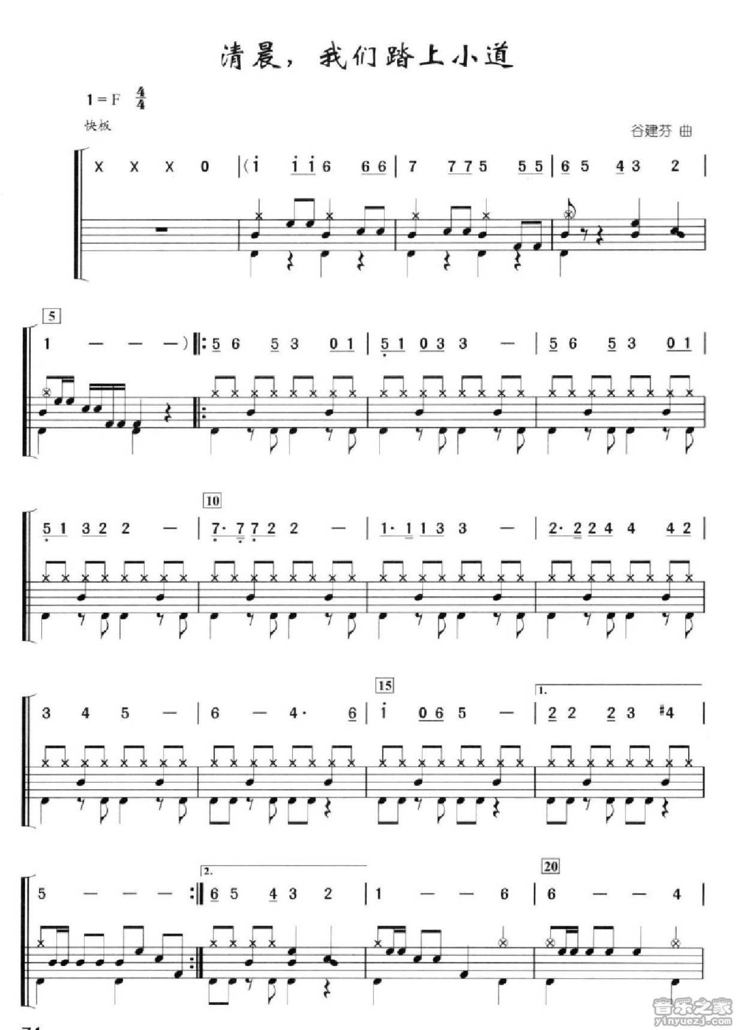 清晨我们踏上小道鼓谱 - 谷建芬 - 架子鼓谱