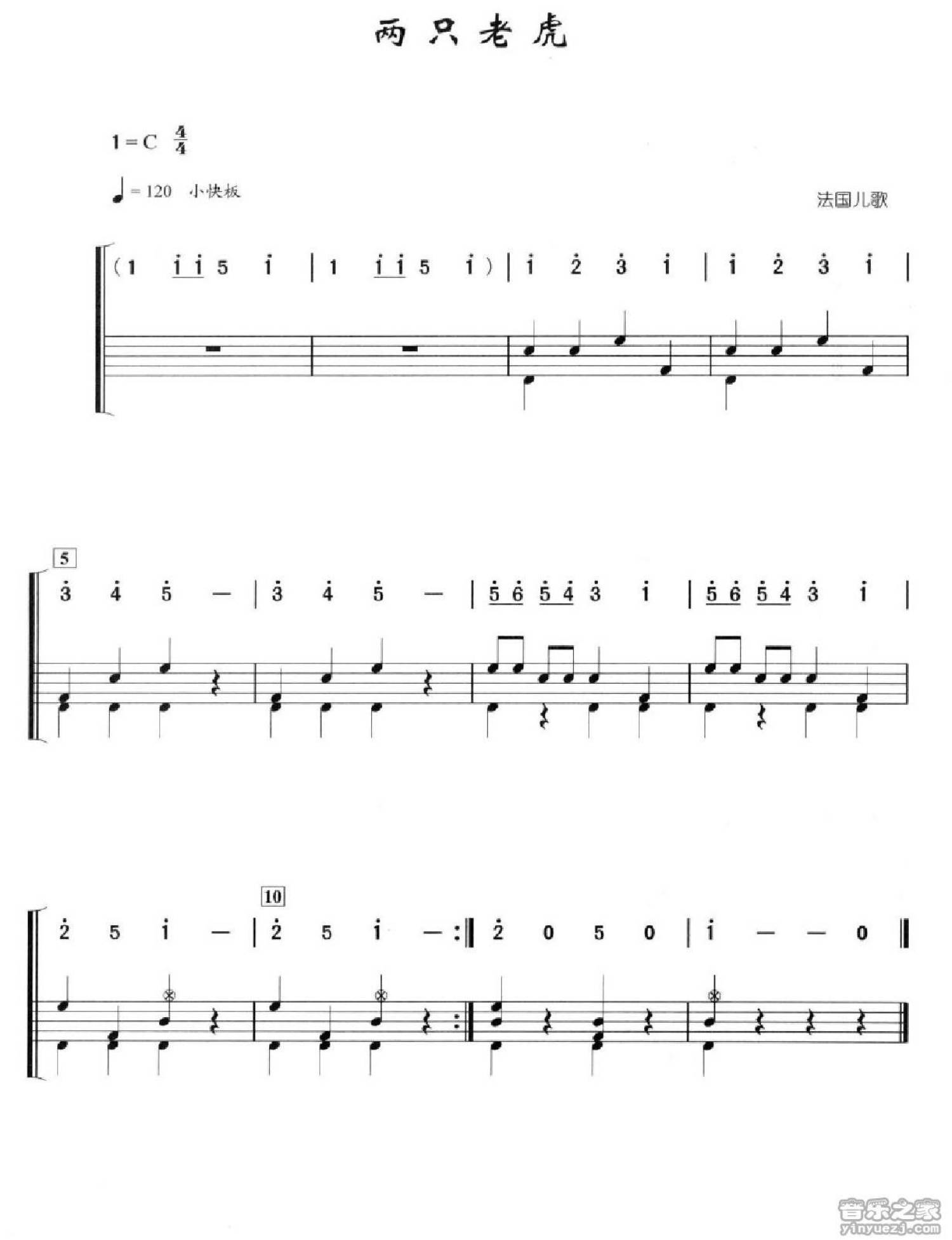 琴谱网为您精心推荐 两只老虎 高清图谱