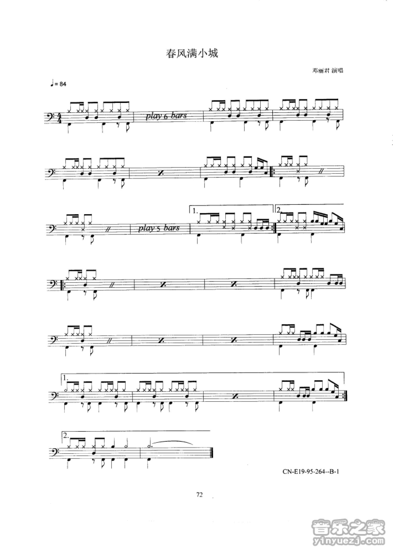 春风满小城鼓谱 - 邓丽君 - 架子鼓谱