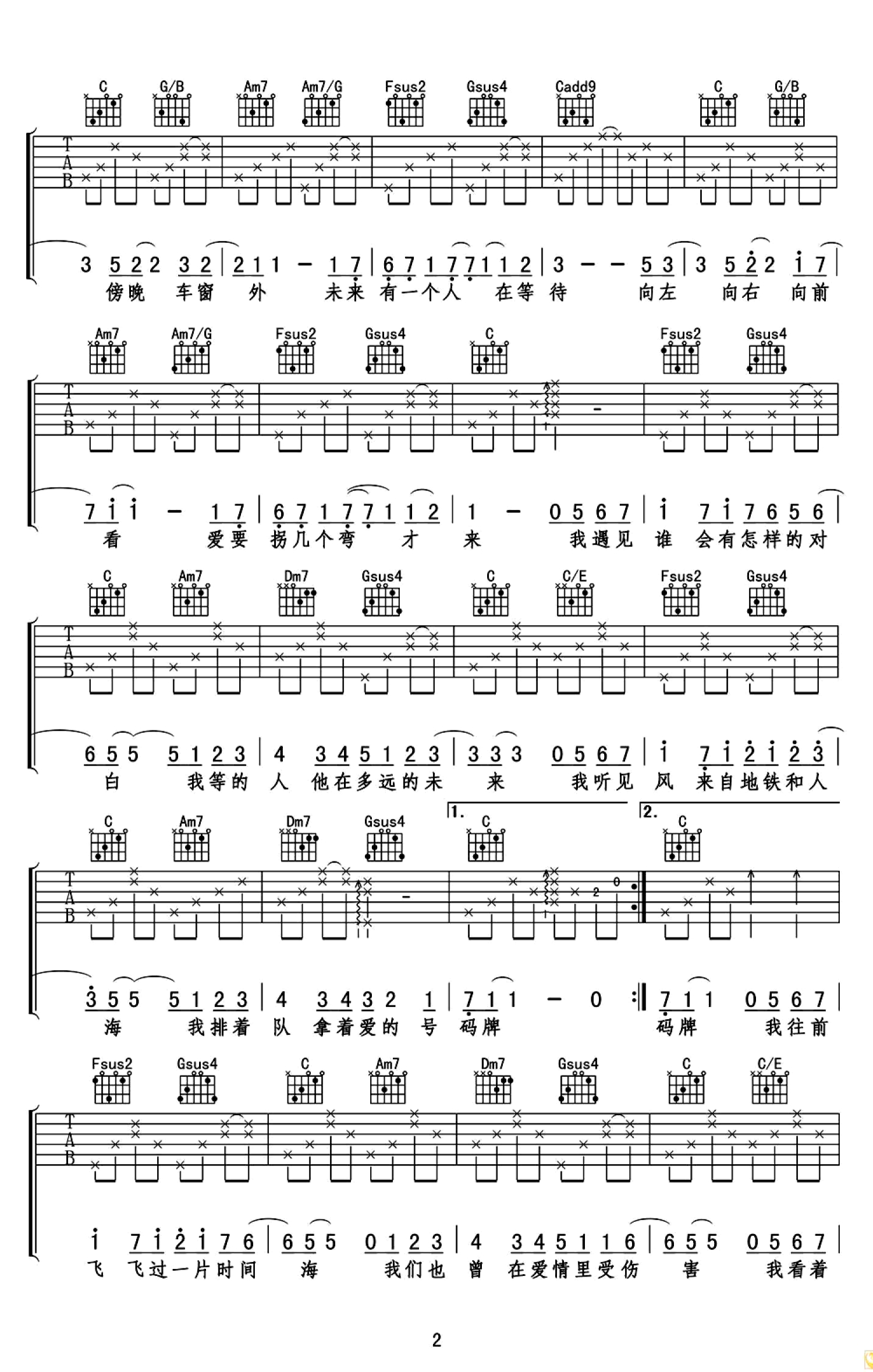 当前位置:琴谱网>吉他弹唱>遇见
