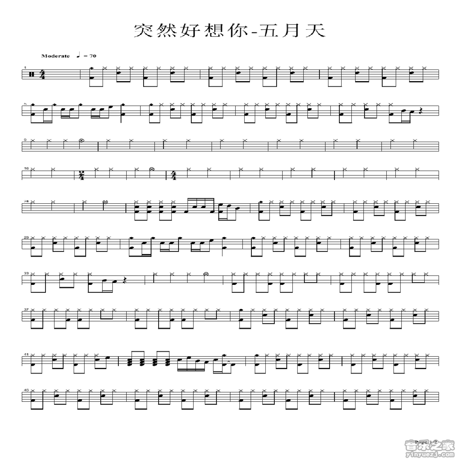 突然好想你鼓谱 - 五月天 - 架子鼓谱