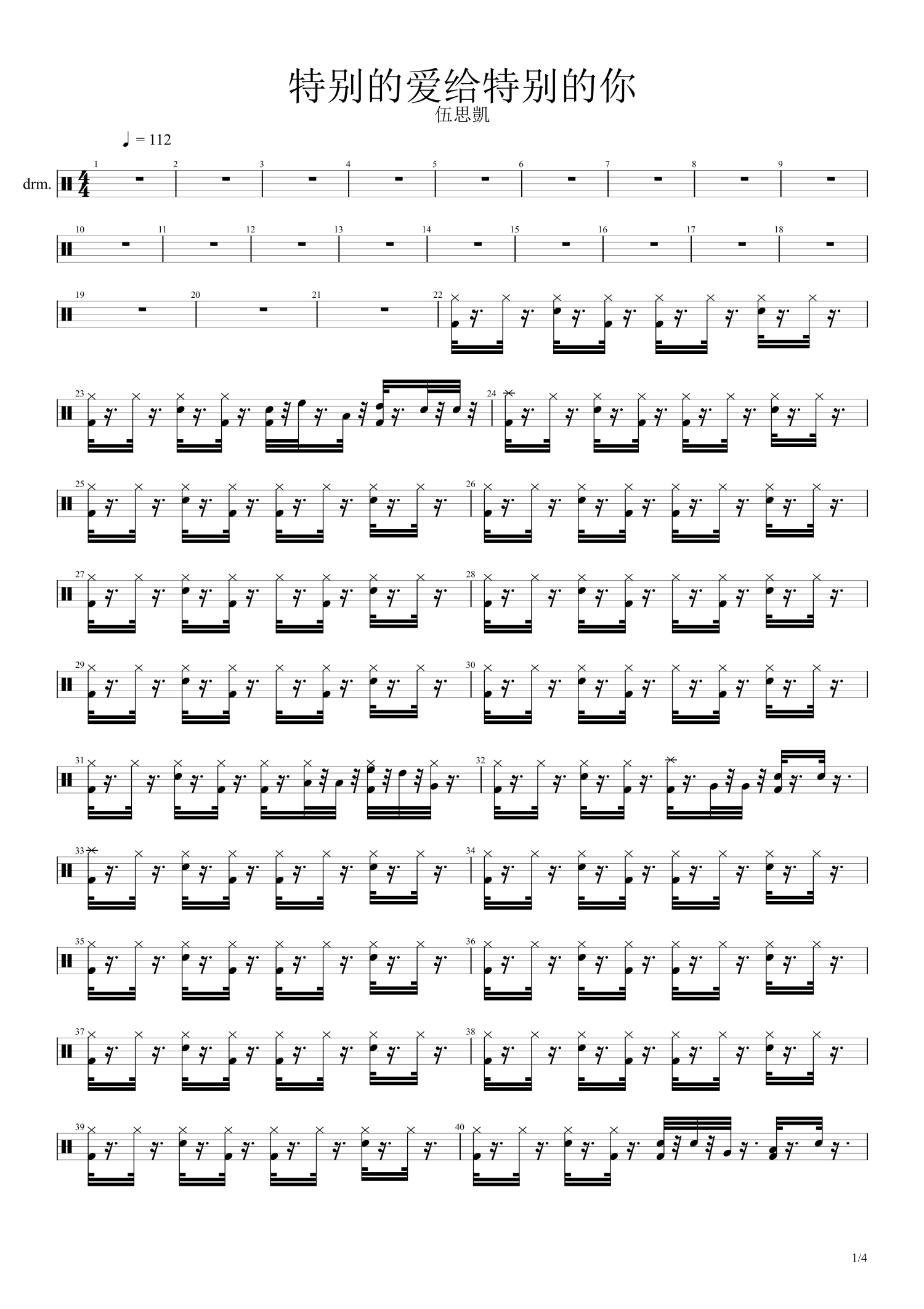曲谱介绍: 《特别的爱给特别的你》架子鼓谱