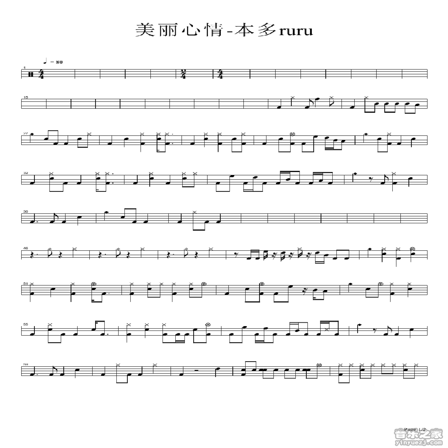 美丽心情鼓谱 - 本多Ruru - 架子鼓谱