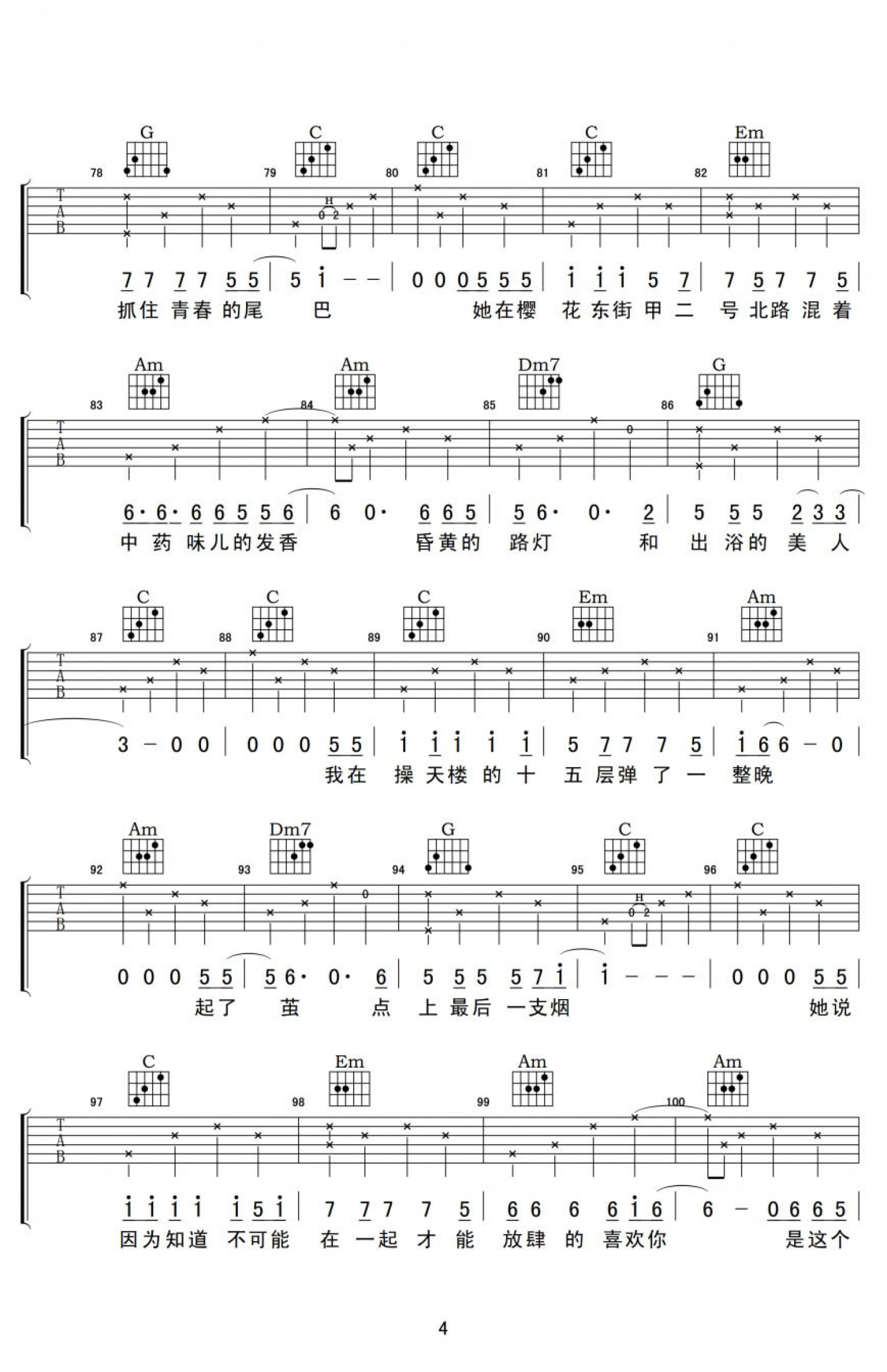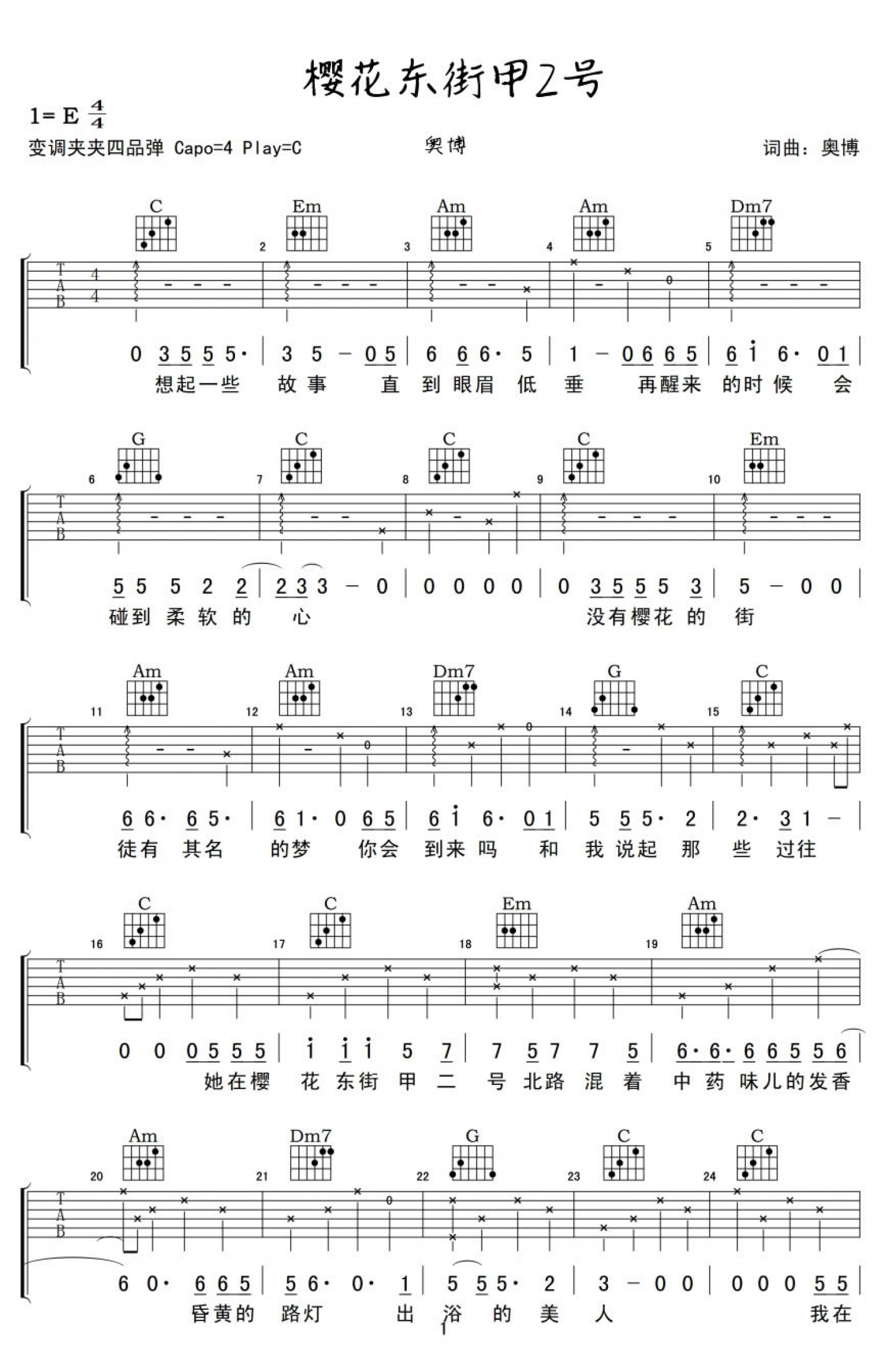 樱花东街甲2号吉他谱 - 奥博 - C调吉他弹唱谱