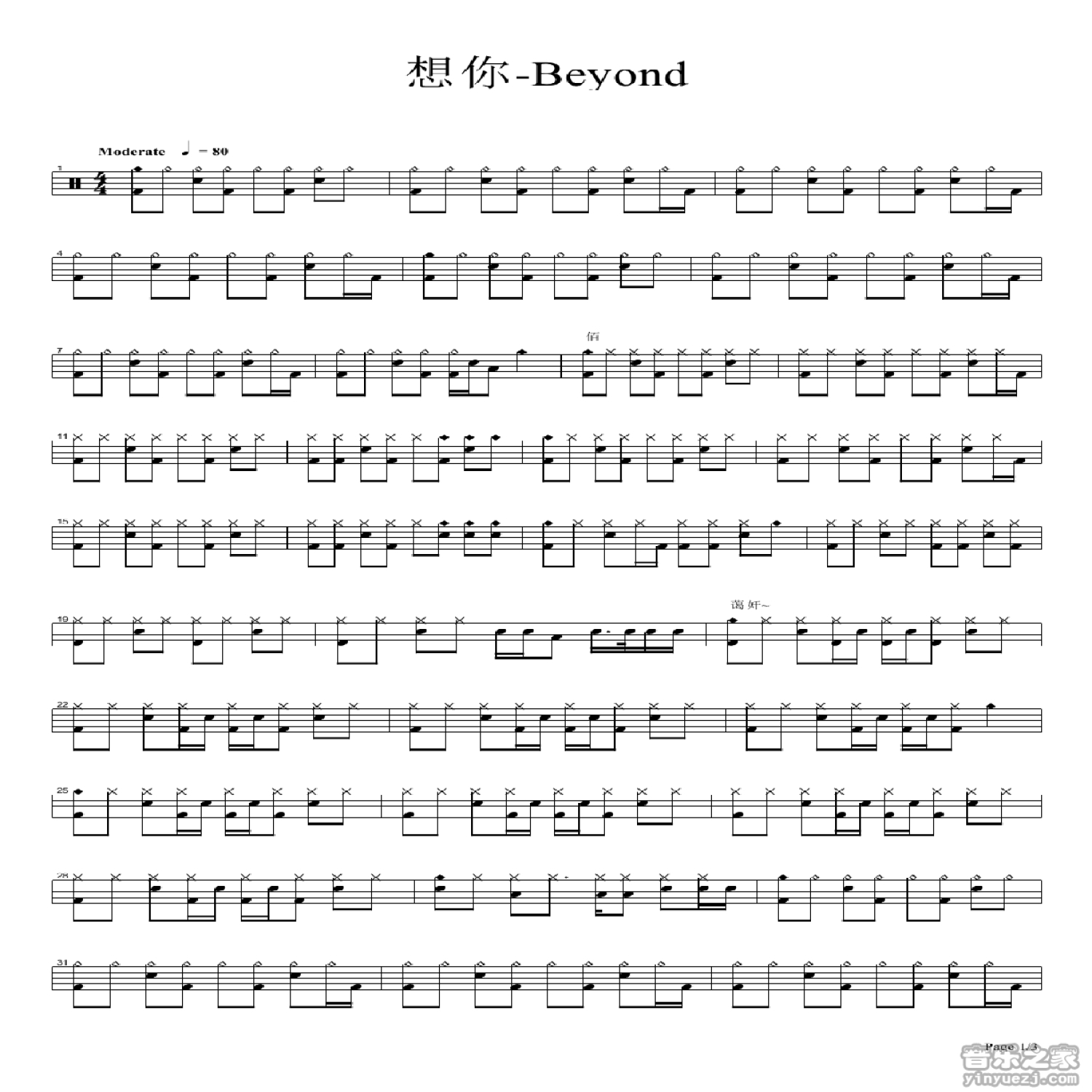 想你鼓谱 - beyond - 架子鼓谱