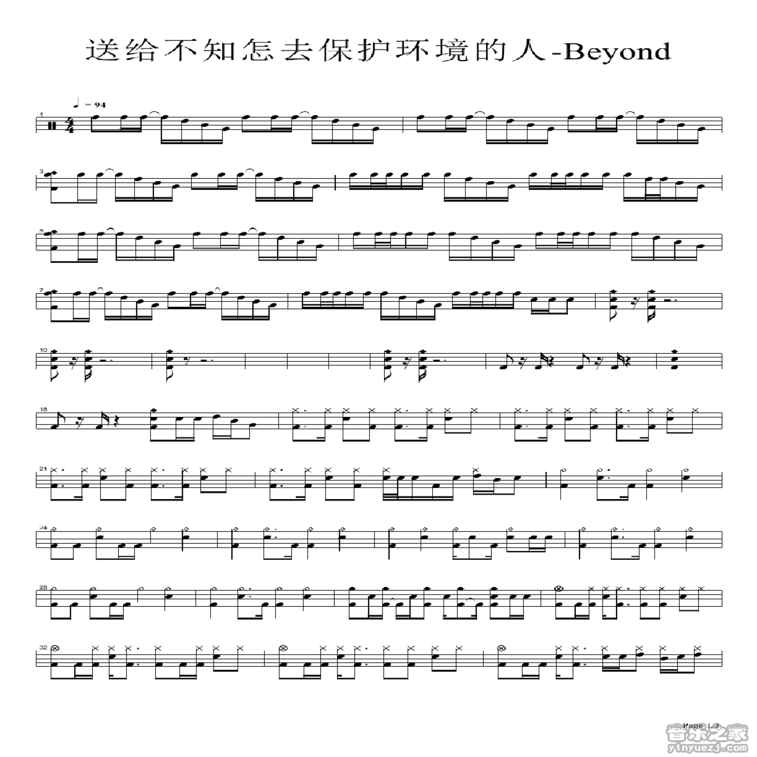 送给不知怎样保护环境的人鼓谱 - beyond - 架子鼓谱