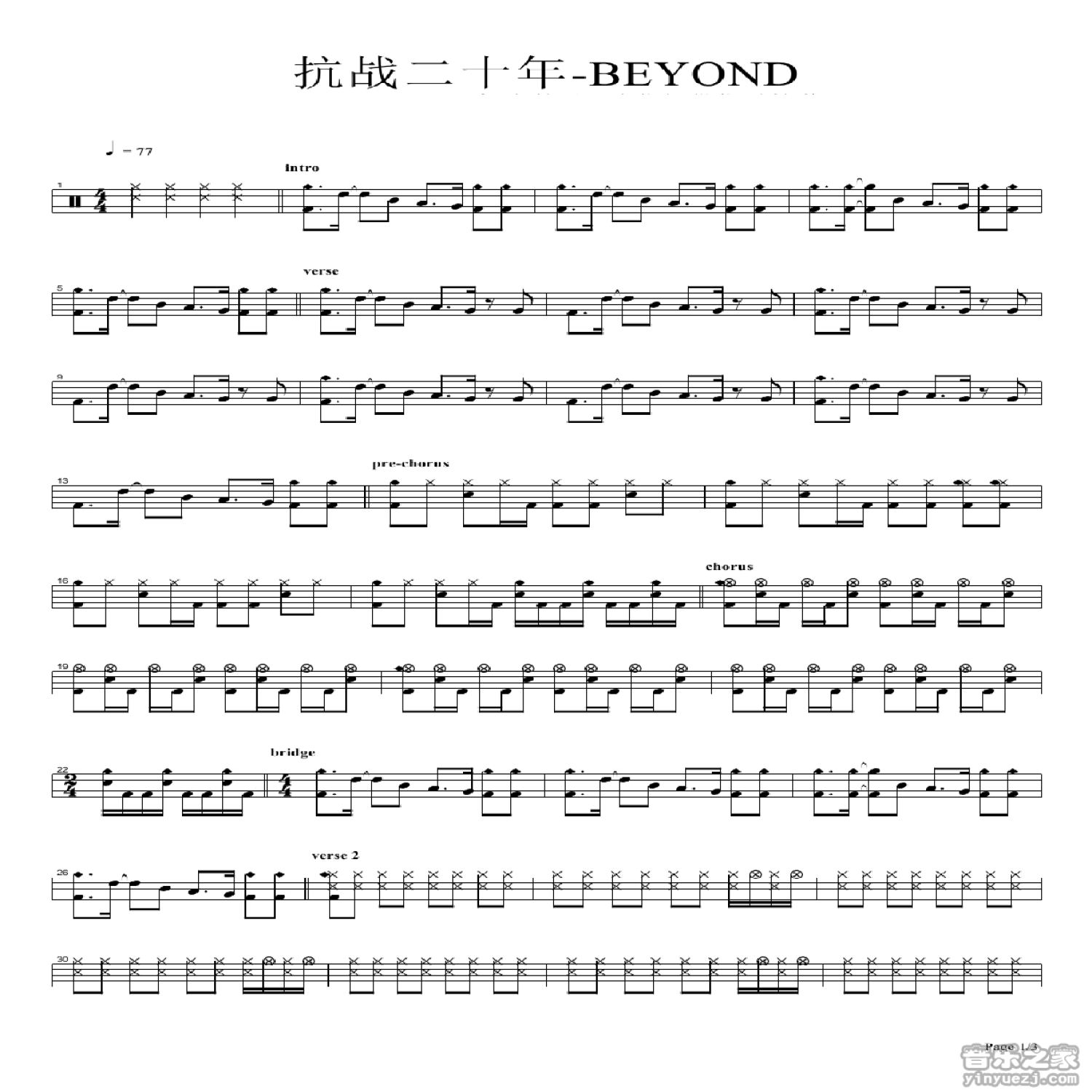 抗战二十年鼓谱 - beyond - 架子鼓谱