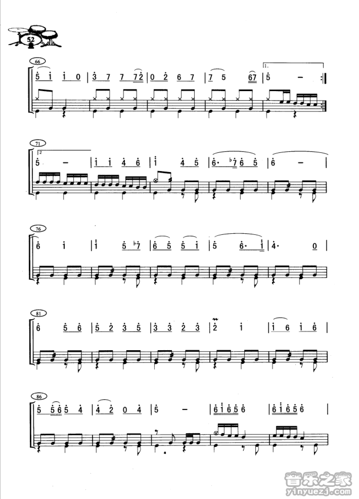 在希望的田野上鼓谱 - 架子鼓谱