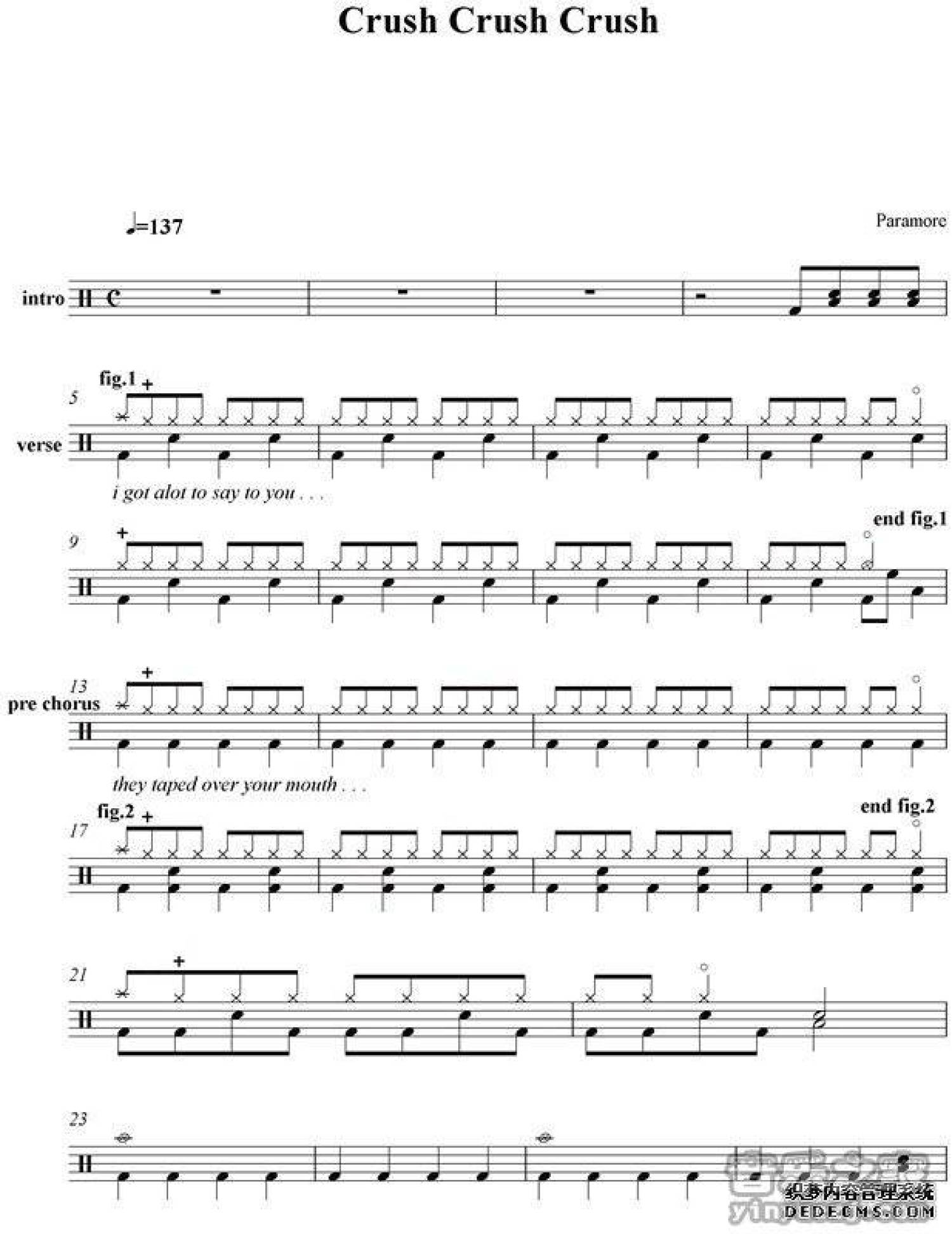 Crush Crush Crush鼓谱 - 架子鼓谱