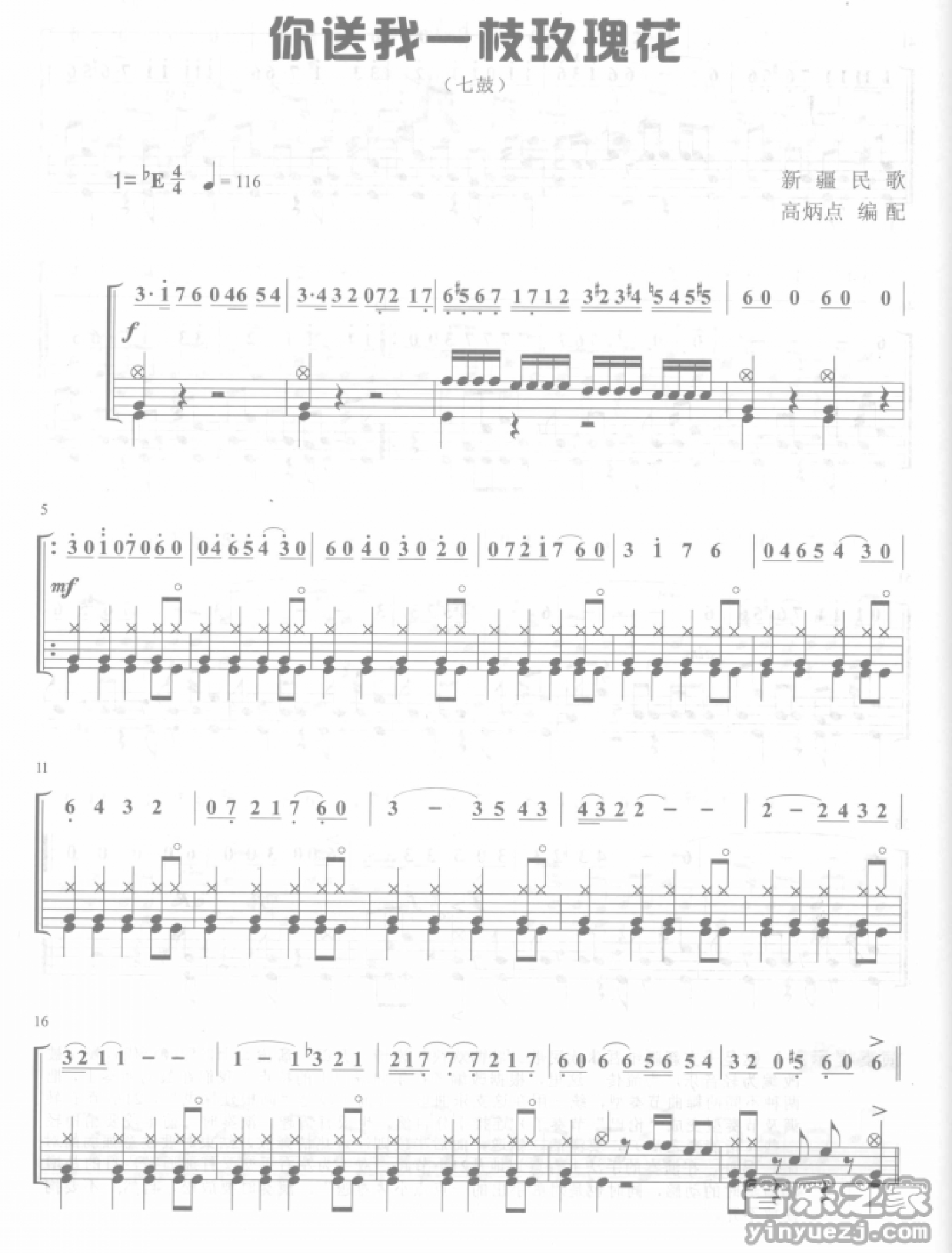 曲谱介绍: 《你送我一支玫瑰花》架子鼓谱(七鼓桶)