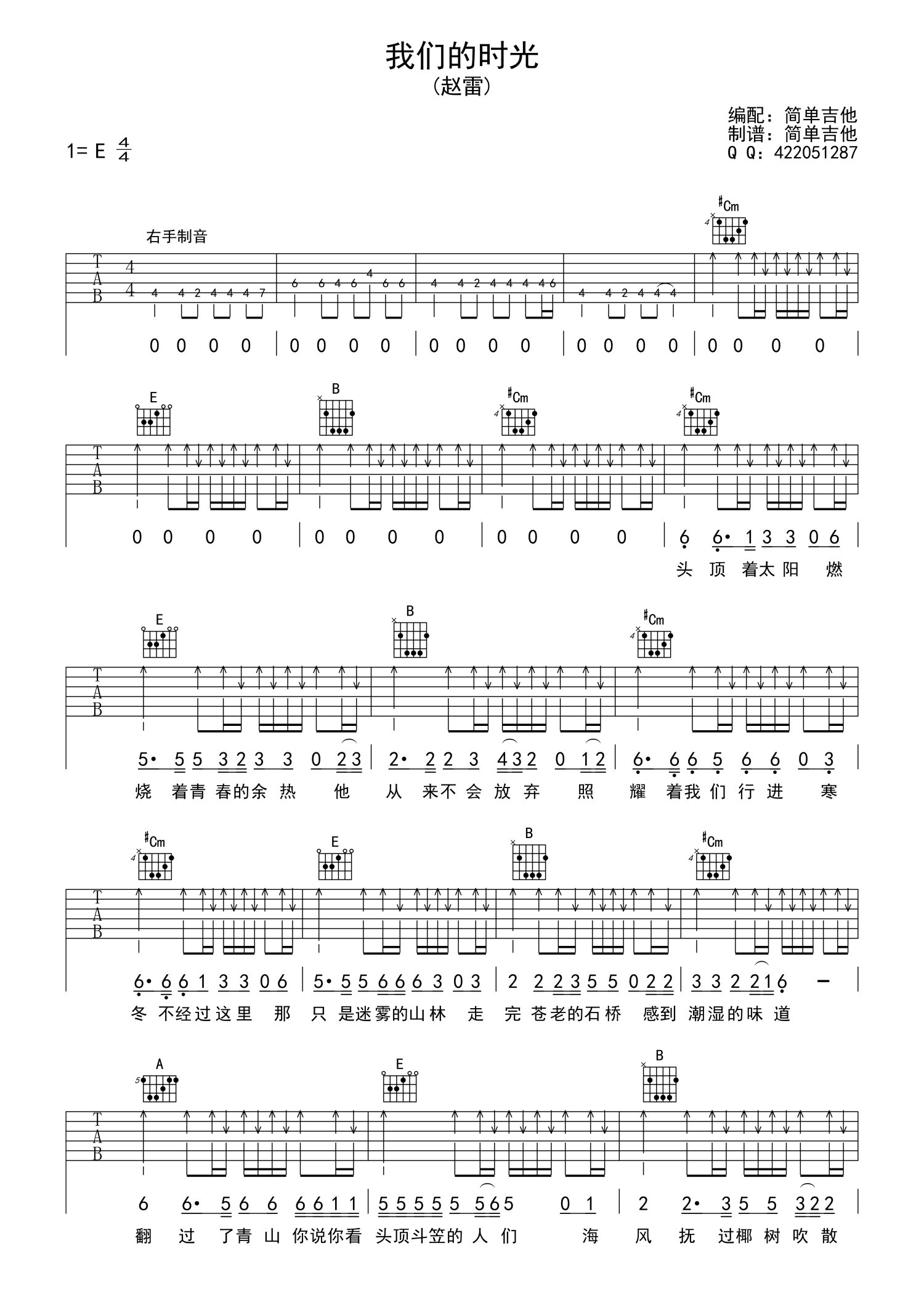 • 我们的时光吉他谱 - 赵雷 - E调吉他弹唱谱第1张
