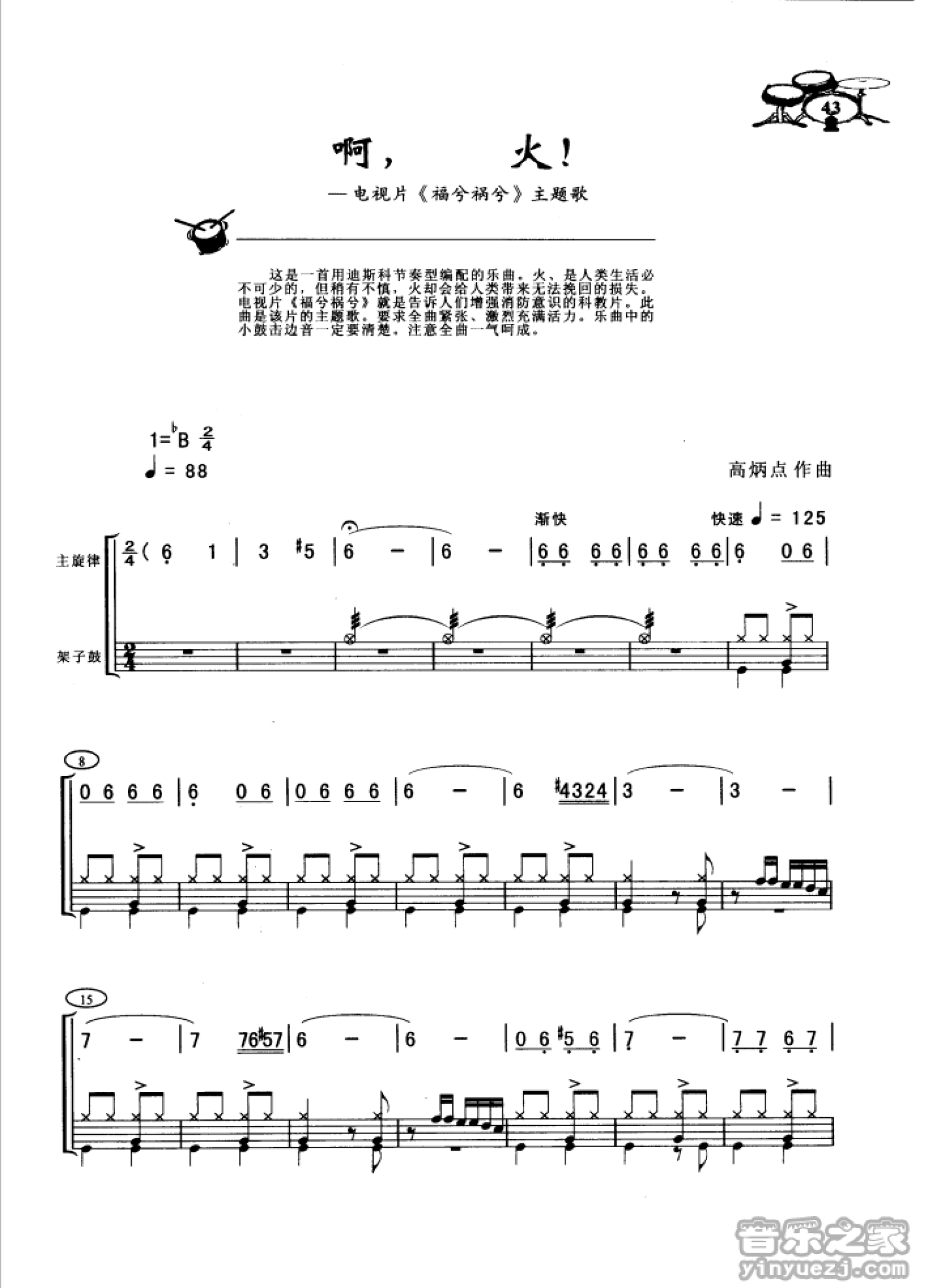 当前位置:琴谱网>架子鼓谱>啊,火!
