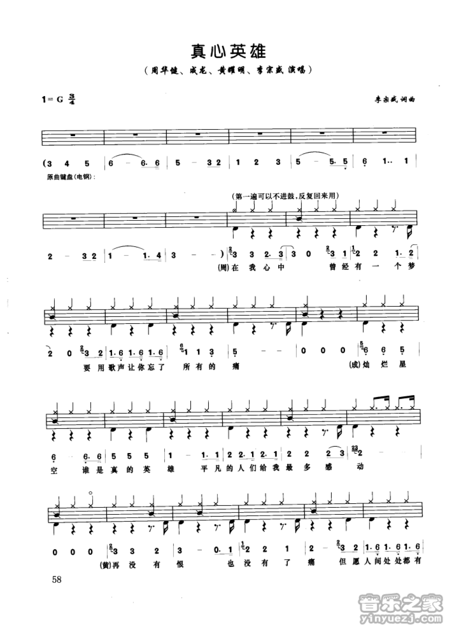 真心英雄鼓谱 - 李宗盛 - 架子鼓谱
